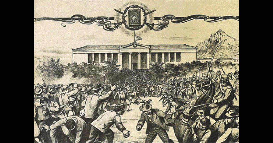 Η δημοσίευση του Κατά Ματθαίον Ευαγγελίου σε συνέχειες στην εφημερίδα «Ακρόπολις», τον Σεπτέμβριο του 1901, προκάλεσε την αντίδραση των συντηρητικών κύκλων στην Ελλάδα, οι οποίοι έβλεπαν πως φαλκιδευόταν ο ελληνισμός από τον πανσλαβισμό. Με παρακίνηση καθηγητών της Θεολογικής Σχολής του Πανεπιστημίου Αθηνών, διοργανώθηκαν φοιτητικές διαδηλώσεις στις αρχές Νοεμβρίου. Στις 8 Νοεμβρίου συντάραξε την πρωτεύουσα διαδήλωση φοιτητών και πολιτών, η οποία κατέληξε σε σφοδρή σύγκρουση με τις δυνάμεις ασφαλείας. Όπως ανέφερε ο Ακαδημαϊκός Χριστόφορος Χαραλαμπάκης («Ένα Ευαγγέλιο που δίχασε αντί να ενώσει», Η Καθημερινή, Σελίδες Ιστορίας, τχ.1, Μάρτιος 2023, σελ. 203), κατά ειρωνεία της τύχης ανάμεσα στους διαμαρτυρόμενους φοιτητές ήταν οι Μανόλης Τριανταφυλλίδης και Δημήτρης Γληνός, οι οποίοι αγωνίζονταν για την προάσπιση της καθαρεύουσας.