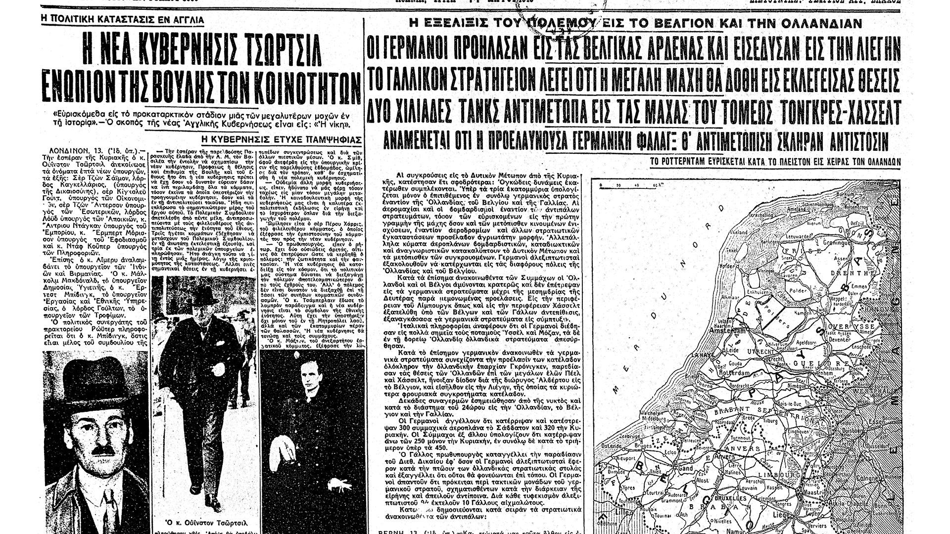 Ξεχωρίζει η πρώτη του ομιλία στο βρετανικό Κοινοβούλιο ως πρωθυπουργός, στην οποία τόνισε την προσήλωσή του στη συνέχιση του αγώνα κατά του Χίτλερ: