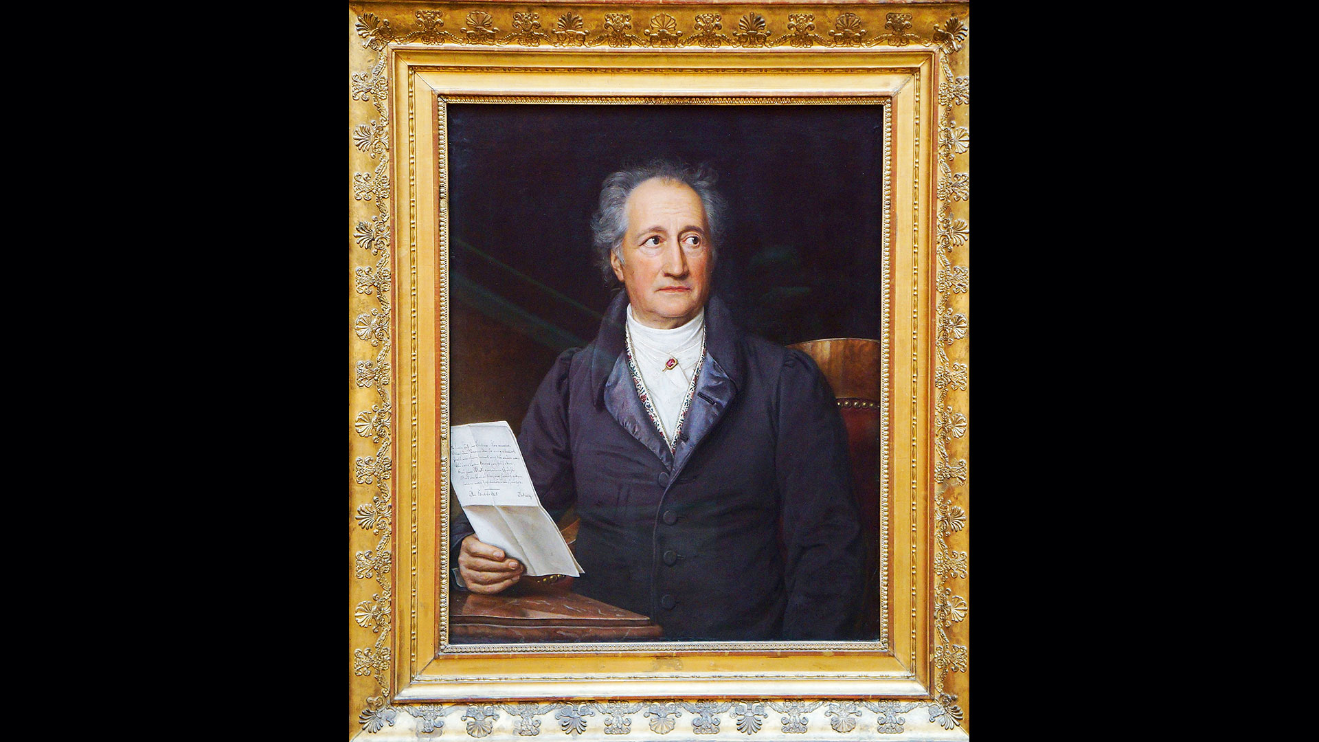 Το αγοράκι το οποίον διέβη την σκοτεινήν πύλην εκείνην την ημέραν, μη ημπορώντας να λαλήση και ακίνητον, ήτο μοιραίον να διανύση ένα μακρότατον διάστημα ζωής και να πραγματοποιήση μίαν μεγαλειώδη ύπαρξιν προ της οποίας έσκυψαν έθνη και βασιλείς. Ογδοήκοντα τρία έτη είχαν περάσει από την ημέραν εκείνην. Τεράστια ιστορικά γεγονότα είχαν σημειωθή καθ’ όλον αυτό το διάστημα και είχαν κατακλύσει το πνεύμα του· ο Επταετής Πόλεμος, ο πόλεμος της Αμερικανικής Ανεξαρτησίας, η Γαλλική Επανάστασις, η ανατολή και η δύσις του αστέρος του Ναπολέοντος, η διάλυσις της Αγίας Ρωμαϊκής Αυτοκρατορίας, η χαραυγή της αστικής περιόδου της ιστορίας. Ο ογδοντάρης, ο οποίος επέζησεν όλων αυτών των γεγονότων, κάθεται εις το γραφείον του, ασπρομάλλης και αλύγιστος, με κάτι παράξενους γεροντικούς κύκλους γύρω εις τις κόρες των ματιών του, οι οποίες δίδουν σχεδόν μίαν έκφρασιν πουλιού εις τα καστανά τοποθετημένα το ένα κοντά εις το άλλο μάτια του. Κάθεται εις το γραφείον του σκοπίμως μη αναπαυτικού του σπουδαστηρίου της Βαϊμάρης και γράφει το τελευταίον του γράμμα εις ένα γηραιόν φίλον του, τον φιλόλογον και πολιτευτήν Γουλιέλμον φον Χούμπολτ, ο οποίος έμενεν εις το Βερολίνον: