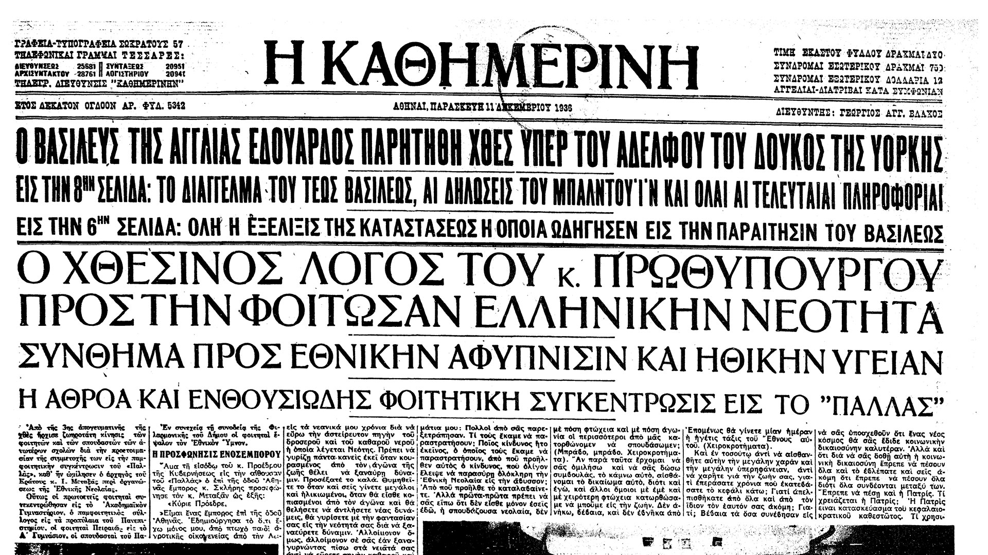 «Επιτέλους μπορώ να πω και εγώ μερικά λόγια. Ποτέ δεν θέλησα να αποκρύψω τίποτα, αλλά μέχρι τώρα δεν ήταν συνταγματικά δυνατό να μιλήσω. Πριν από λίγες ώρες εκπλήρωσα το τελευταίο μου καθήκον ως βασιλιάς και αυτοκράτορας, και τώρα που με διαδέχθηκε ο αδελφός μου, ο Δούκας της Υόρκης, τα πρώτα μου λόγια πρέπει να είναι ότι δηλώνω την υποταγή μου σε αυτόν. Το κάνω με όλη μου την καρδιά. Όλοι γνωρίζετε τους λόγους που με ώθησαν να παραιτηθώ από τον θρόνο. Θέλω όμως να καταλάβετε ότι παίρνοντας αυτή την απόφαση, δεν ξέχασα τη χώρα ή την αυτοκρατορία, την οποία ως πρίγκιπας της Ουαλίας, και πρόσφατα ως βασιλιάς, προσπάθησα επί είκοσι πέντε χρόνια να υπηρετήσω. Αλλά πρέπει να με πιστέψετε όταν σας λέω ότι μου ήταν αδύνατο να σηκώσω το βαρύ φορτίο της ευθύνης και να εκπληρώσω τα καθήκοντά μου ως βασιλιάς, όπως θα ήθελα, χωρίς τη βοήθεια και την υποστήριξη της γυναίκας που αγαπώ».