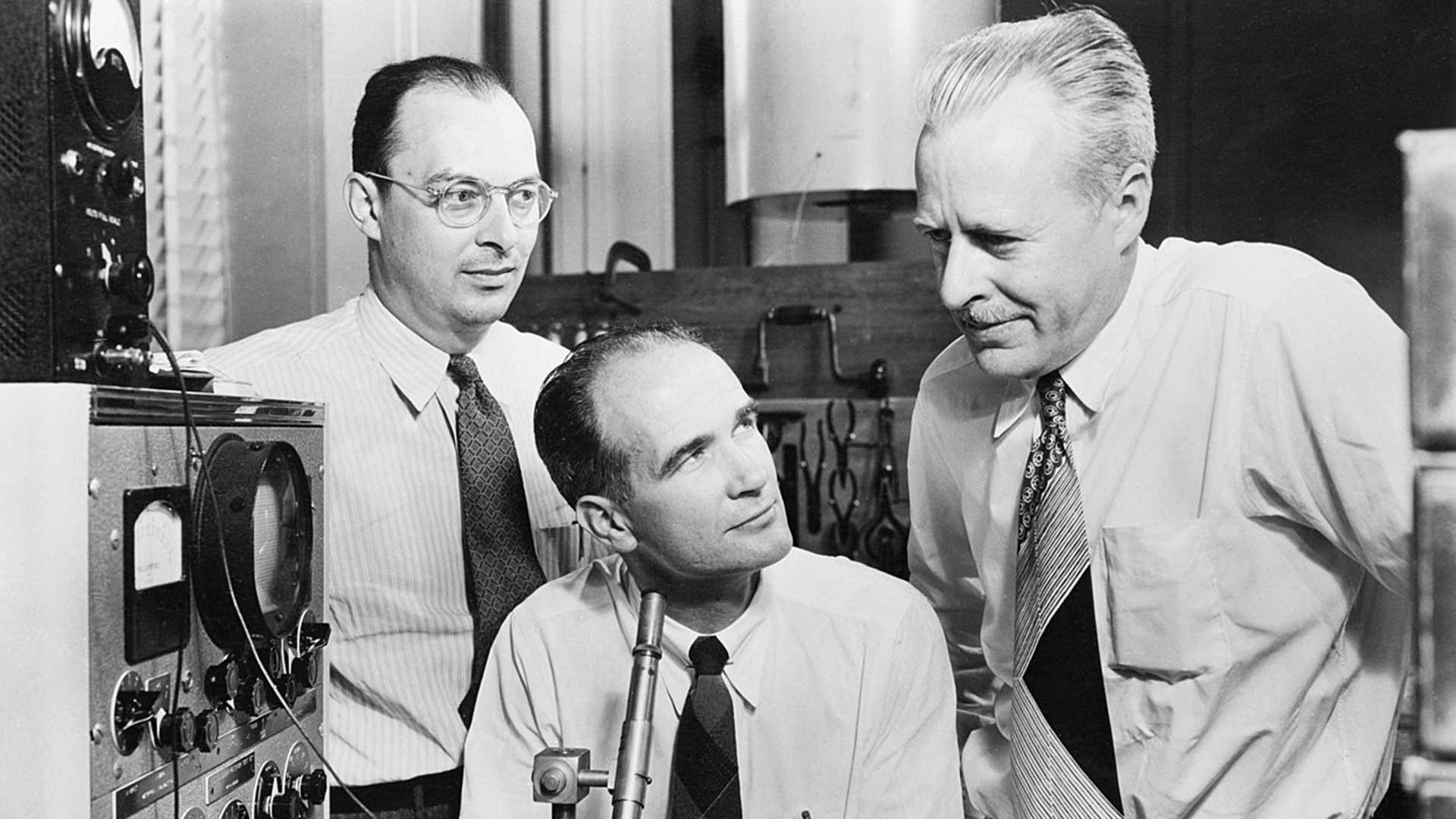 Πίσω από την ανακάλυψη κρύβονται τρεις επιστήμονες -οι Walter Brattain, John Bardeen και ο William Shockley-, οι οποίοι και θα μοιράζονταν το Νόμπελ Φυσικής τον Δεκέμβριο του επόμενου έτους για την ανακάλυψη αυτή.