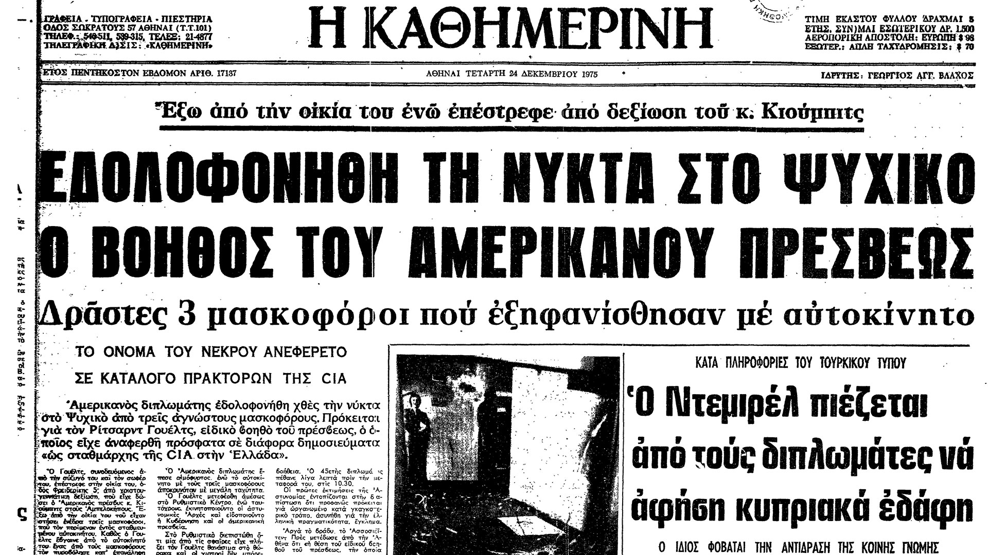 Το βράδυ της 23ης Δεκεμβρίου 1975, ο Γουέλς και η οικογένειά του βρίσκονταν σε χριστουγεννιάτικο πάρτι στην κατοικία του Αμερικανού πρέσβη. Κατά την επιστροφή στην κατοικία τους, ο Γουέλς θα δεχόταν θανατηφόρο πυροβολισμό. Αναφέρει χαρακτηριστικά η «Καθημερινή» στο πρωτοσέλιδο της 24ης Δεκεμβρίου: «Ο Γουέλτς, συνοδευόμενος από την σύζυγό του και τον σωφέρ του, επέστρεφε στην οικίαν του, οδός Φρειδερίκης 5, από χριστουγεννιάτικη δεξίωση […] Έξω από την οικία του του είχαν στήσει ενέδρα τρεις μασκοφόροι, που τον περίμεναν εντός σταθμευμένου αυτοκινήτου. Καθώς ο Γουέλτς έβγαινε από το αυτοκίνητό του, ένας από τους μασκοφόρους τον πυροβόλησε κατ’ επανάληψη και από πολύ κοντά. Ο Αμερικανός διπλωμάτης έπεσε αιμόφυρτος, ενώ το αυτοκίνητο με τους τρεις μασκοφόρους απομακρυνόταν με μεγάλη ταχύτητα. […] Οι πρώτες εκτιμήσεις της αστυνομίας εντοπίζονται στην διαπίστωση ότι προφανώς πρόκειται για ωργανωμένο κατά γκανγκστερικό τρόπο, ασυνήθη για την ελληνική πραγματικότητα, έγκλημα».