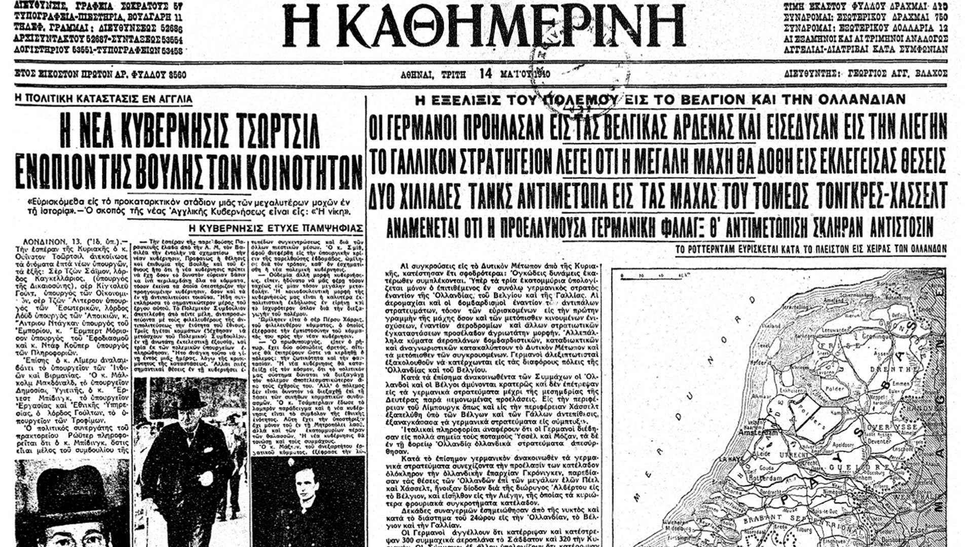 Λίγες ημέρες αργότερα, στις 13 Μαΐου, ο νέος πρωθυπουργός (ο οποίος ανέλαβε και το υπουργείο Άμυνας) ανήλθε στο βήμα της Βουλής των Κοινοτήτων εν μέσω επευφημιών. Εκείνη την ημέρα, ο Τσώρτσιλ θα εκφωνούσε έναν από τους διασημότερους λόγους του που θα εδραίωνε τη θέση του ως ενός από τους σημαντικότερους πολιτικούς ηγέτες του 20ού αιώνα. Την επομένη, η «Καθημερινή» δημοσίευε τον λόγο του: