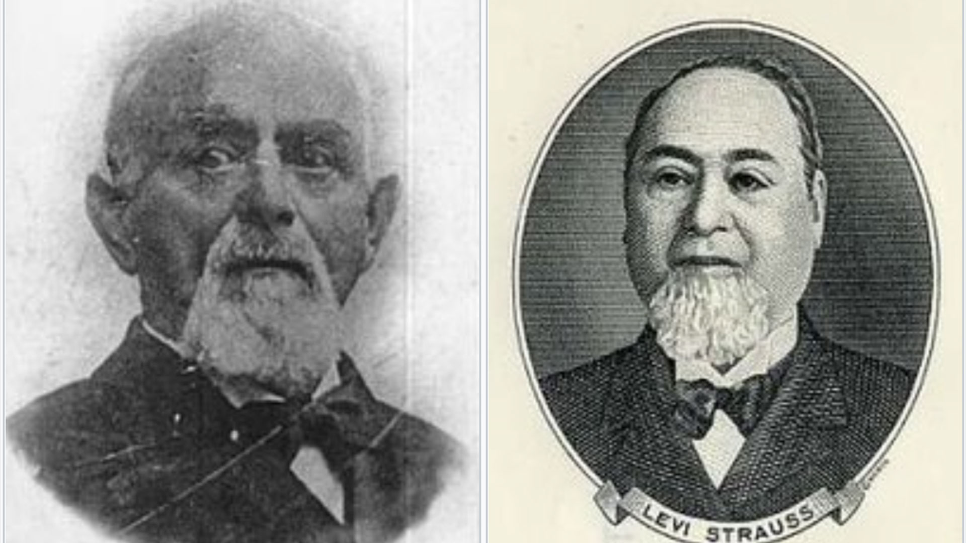 Ο Levi Strauss, ένας Βαυαρός μετανάστης, έφτασε στο Σαν Φρανσίσκο την εποχή του Πυρετού του Χρυσού, με αρχική πρόθεση να πουλήσει «ξηρά είδη» σε ανθρακωρύχους. (Στην Αμερική ως τέτοια λογίζονταν τα υφάσματα, τα έτοιμα ρούχα, αλλά και προϊόντα όπως ο καπνός, η ζάχαρη, το αλεύρι και το αλάτι. Πάντως ο Strauss εμπορευόταν κυρίως υφάσματα.) Σε αυτό το πολυσύχναστο περιβάλλον, ο Strauss συνάντησε τον Jacob Davis, έναν ράφτη που αγόραζε συχνά υφάσματα από την επιχείρηση χονδρικής πώλησης του Strauss. Ο Davis κατασκεύαζε ανθεκτικά παντελόνια εργασίας για ανθρακωρύχους και είχε επινοήσει μια μέθοδο ενίσχυσης των «σημείων πίεσης» των παντελονιών με χάλκινα πριτσίνια (rivets). Αναγνωρίζοντας τις προοπτικές αυτής της καινοτομίας, ο Davis προσέγγισε τον Στράους για οικονομική υποστήριξη ώστε να εξασφαλίσει δίπλωμα ευρεσιτεχνίας.