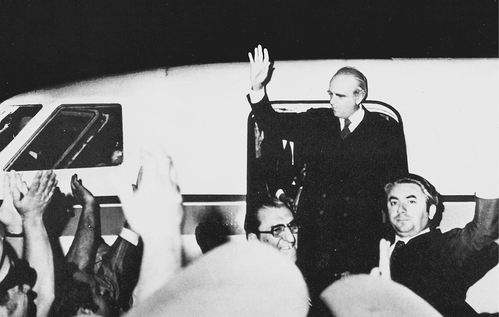 Λίγο μετά τις 2 τα ξημερώματα της 24ης Ιουλίου 1974 το αεροπλάνο που μετέφερε τον Κωνσταντίνο Καραμανλή από το Παρίσι στην Αθήνα προσγειώθηκε στο αεροδρόμιο του Ελληνικού. Το μέγα πλήθος που τον υποδέχθηκε παραληρούσε. Κανένα μέτρο ασφαλείας δεν μπορούσε να τηρηθεί. Ούτε, όμως, ήταν βέβαιο ότι οι αστυνομικές δυνάμεις θα πειθαρχούσαν στις άνωθεν εντολές. Αντικρίζοντας τη χαώδη κατάσταση που επικρατούσε στο Ελληνικό, ο Τάκης Λαμπρίας, ο οποίος συνόδευε τον Καραμανλή στην πτήση από το Παρίσι προς την Αθήνα, φοβήθηκε ότι η κατάσταση μπορούσε να ξεφύγει από κάθε έλεγχο και ο Καραμανλής να δολοφονούνταν «εν θριάμβω».