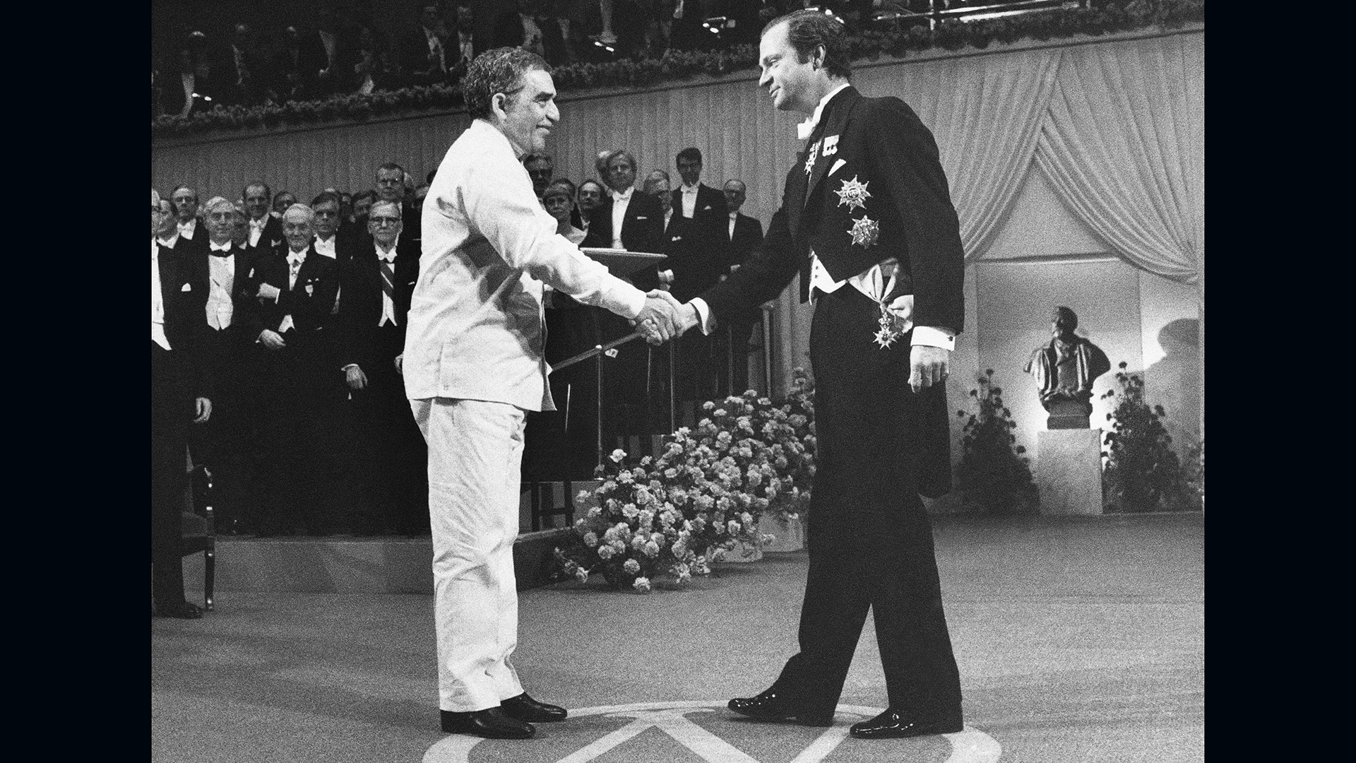 Το 1982 έρχεται η παγκόσμια αναγνώριση της αξίας του έργου του. Εγινε ο τέταρτος Λατινοαμερικανός νομπελίστας Λογοτεχνίας, μετά την Γκαμπριέλα Μιστράλ (1945), τον Μιγκέλ Ανχελ Αστούριας (1967) και τον Πάμπλο Νερούδα (1971). Στην επίσημη ομιλία της τελετής απονομής, επισημάνθηκε, επίσης, η πολύ αξιόλογη δημοσιογραφική πορεία του. «Εκτός από τη λογοτεχνική του παραγωγή (ο Γκαρσία Μάρκες) υπήρξε πολύ δραστήριος ως δημοσιογράφος και τα κείμενά του είναι πολυδιάστατα, εφευρετικά, συχνά προκλητικά».