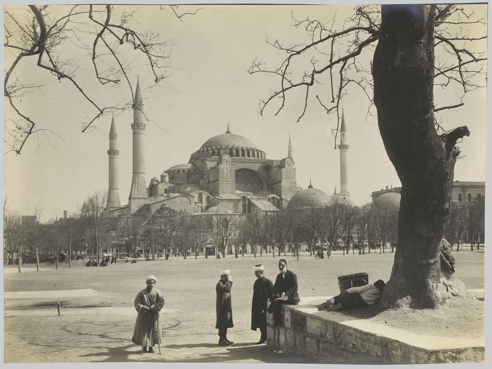 Ο Αμερικανός αρχαιολόγος κ. Ουάϊτμορ, εις τον οποίον έχει ανατεθή η αποκάλυψις των ψηφιδωτών της Αγίας Σοφίας, συνεπλήρωσε τας εργασίας τας οποίας εξετέλει υπεράνω της πύλης του Ιουστινιανού και προς το νοτιοδυτικόν μέρος του νάρθηκος. Η εργασία αύτη έφερεν εις φως μιαν θαυμασίαν εικόνα, ήτις έχει εις το μέσον την Παναγίαν με το Θείον βρέφος. Αριστερά ίσταται ο Κωνσταντίνος ο Μέγας, προσφέρων την πόλιν της Κων/πόλεως και δεξιά ο Ιουστινιανός, προσφέρων τον ναόν της Αγίας Σοφίας.