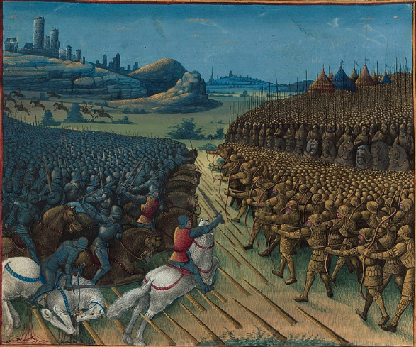 Η μοιραία μάχη με τα στρατεύματα του Βαγιαζήτ δόθηκε στις 25 Σεπτεμβρίου 1396 στη Νικόπολη του Κάτω Δούναβη και έληξε με τη συντριβή των χριστιανικών δυνάμεων. Οπως αναφέρουν κάποιες πηγές, η ευθύνη για την ήττα αποδόθηκε στην τακτική των Γάλλων ιππέων, οι οποίοι, παρακούοντας τις εντολές του Σιγισμούνδου για διενέργεια μικρών και μη εξαντλητικών μαχών, επιτέθηκαν μετωπικά στους Οθωμανούς. Παρότι διέσπασαν την πρώτη γραμμή άμυνας των Οθωμανών, οι Γάλλοι ιππείς συνάντησαν ισχυρή αντίσταση όταν βρέθηκαν αντιμέτωποι με τις επίλεκτες μονάδες του οθωμανικού στρατού, με αποτέλεσμα την καταστροφή τους.