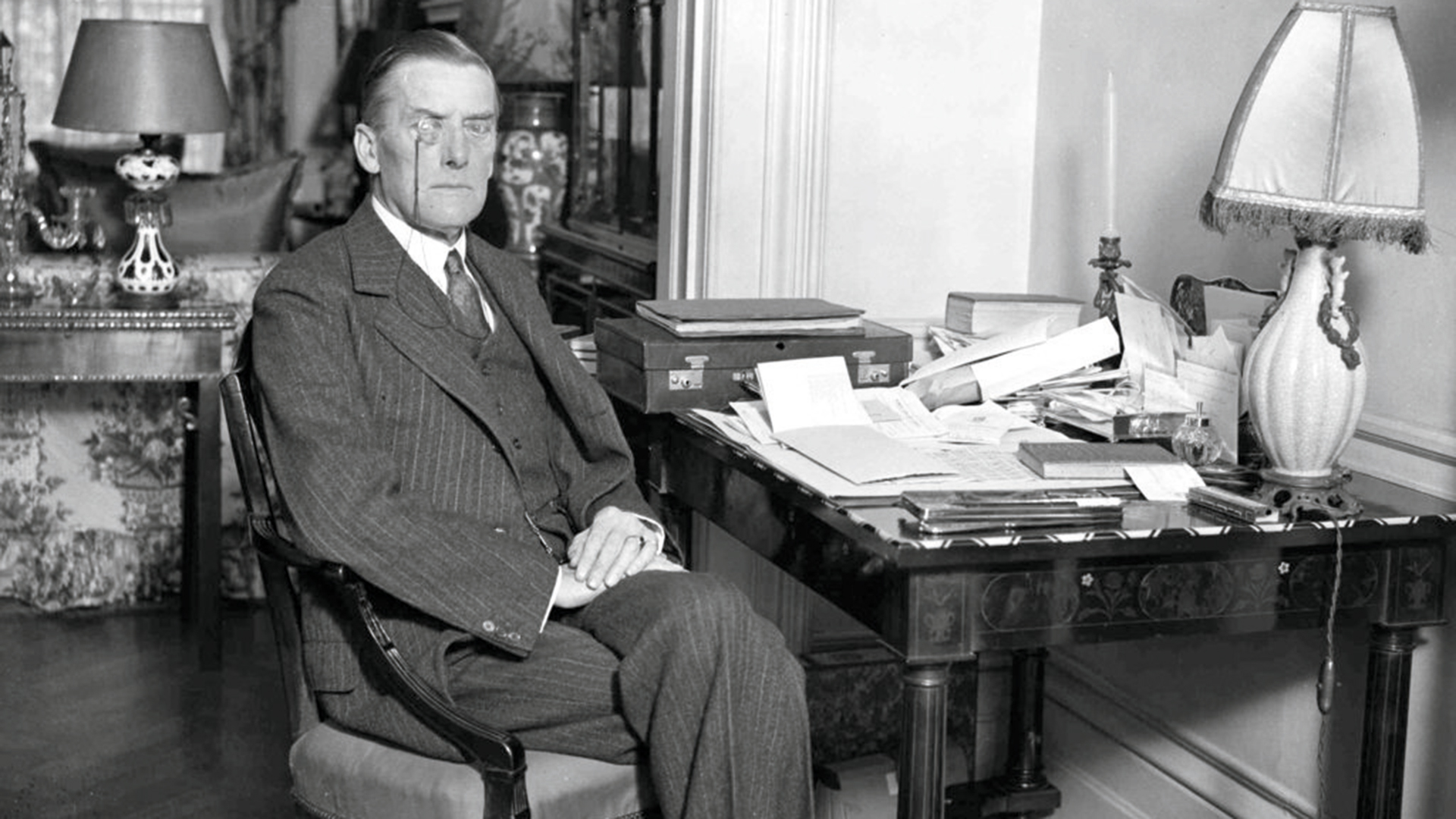 [Συνέντευξη Ωστεν Τσάμπερλεν, φωτ.] «Δυνάμεθα, ναι ή όχι, να έχωμεν εμπιστοσύνην εις τας ρητάς υποσχέσεις και εις τας συνθήκας επί των οποίων τα διάφορα κράτη ήλθον εις διαπραγματεύσεις τας οποίας επισήμως προσεπικύρωσαν; Μήπως το Σύμφωνον της Κοινωνίας των Εθνών είνε ένα κουρελόχαρτον, το οποίον επικαλούμεθα μόνον όταν ανταποκρίνεται προς τα συμφέροντά μας και το οποίον θέλομεν ν’ αγνοούμεν όταν γίνεται ενοχλητικόν δι’ ημάς;».