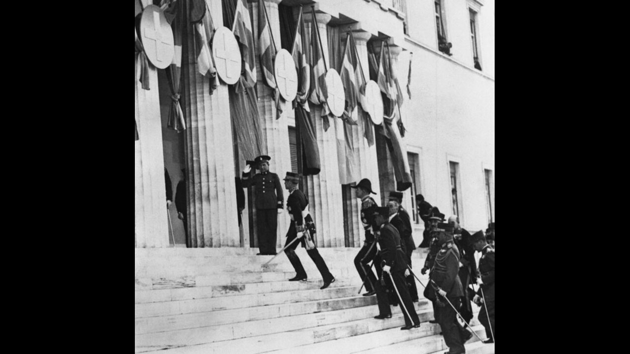 Η στιγμή έφθασε πλέον. Και ενώ οι κώδωνες των εκκλησιών ηχούν χαρμοσύνως, ενώ η ατμόσφαιρα δονείται από τον βόμβον των αεροπλάνων και από τας σειρήνας και τας συρίκτρας των ατμοπλοίων, που σφυρίζουν πλέον όχι «Ερχε… Ερχεται!», αλλά τον «Τον ε-φέ-ρα-με!», η «Ελλη» αγκυροβολεί την 9.30 πρωϊνήν. Και μια ιαχή ακούεται από τα πλήθη. Δεν είναι ζητωκραυγαί αυτό. Είναι μια θύελλα από ενθουσιασμόν. […] Ο Βασιλεύς φέρει μεγάλην στολήν στρατηγού παλαιού τύπου άνευ λοφίου, με τον ελληνικόν Μεγαλόσταυρον και ο Διάδοχος στολήν πλωτάρχου με τον μεγαλόσταυρον επίσης. Η Α.Μ. έχει αδυνατίσει. Είναι κάτωχρος και συγκεκινημένος. […] Η στιγμή της αποβιβάσεως είναι αδύνατον να περιγραφή. Πανδαιμόνιον, παραφροσύνη από τας ζητωκραυγάς, τας κωδωνοκρουσίας, τους συριγμούς των σειρήνων των ατμοπλοίων, τον βόμβον των ελίκων των αεροπλάνων, τας ιαχάς του πλήθους. Και μια μυριόστομος κραυγή κυριαρχεί: «Ζήτω ο Βασιλεύς!».