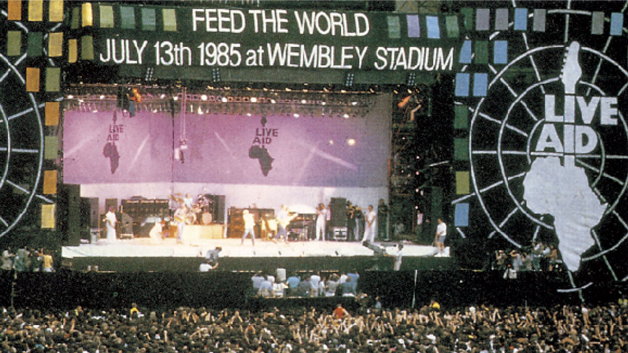 Στις 13 Ιουλίου 1985, δύο ταυτόχρονες συναυλίες – μαμούθ, η μία στο Γουέμπλεϊ του Λονδίνου και η άλλη στο John F. Kennedy Stadium της Φιλαδέλφειας στις Ηνωμένες Πολιτείες, ενώθηκαν μέσα από μια τιτάνια δορυφορική μετάδοση που έφερε την τεράστια ανθρωπιστική κρίση της Αιθιοπίας στο επίκεντρο της παγκόσμιας προσοχής.