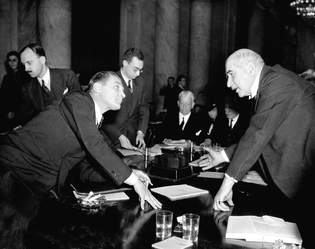 Αγγέλλεται εκ Βασιγκτώνος ότι σήμερον την πρωΐαν παρουσιάσθη προ της αρμοδίας επιτροπής της Γερουσίας ο κ. Μόργκαν όπως προβή εις δηλώσεις επί του ρόλου τον οποίον έπαιξεν ο Οίκος Μόργκαν κατά την ανάμιξιν των Ηνωμένων Πολιτειών εις τον πόλεμον. Ο κ. Μόργκαν εβεβαίωσεν ότι ο υποβρύχιος πόλεμος υπήρξεν η μόνη αφορμή της συμμετοχής των Ηνωμένων Πολιτειών εις την σύρραξιν. Ο πρόεδρος της επιτροπής κ. Νάϊ εξέφρασε την γνώμην ότι εμπορικά συμφέροντα προεκάλεσαν την παγκόσμιον ανάφλεξιν.