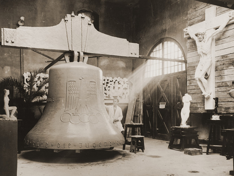 Ο μέγας κώδων των Ολυμπιακών αγώνων, όστις έχει βάρος 16 τόννων και εκομίσθη χθες εκ Μπόχουμ, παρεδόθη σήμερον περί ώραν 11.30΄ εις την Ολυμπιακήν επιτροπήν διά να αναρτηθή επί του Πύργου, όστις θα φέρη το όνομα του Φύρερ και ο οποίος ήδη ανεγείρεται εις το μέρος όπου θα διεξαχθούν οι Ολυμπιακοί Αγώνες.