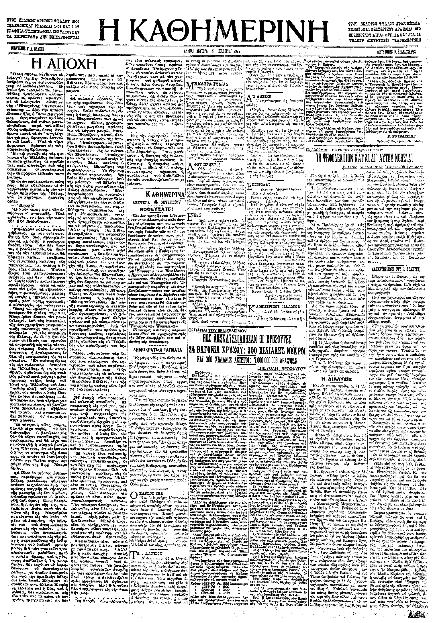 «Σήμερον την δεκάτην πρωϊνήν εγένοντο ενταύθα επισήμως τα εγκαίνια της διεθνούς εμπορικής εκθέσεως. Παρέστησαν οι Υπουργοί των Οικονομικών κ. Δροσόπουλος, της Γεωργίας κ. Νάκος […] οι πρόξενοι των Ξένων Κρατών και πλείστοι ξένοι […].»