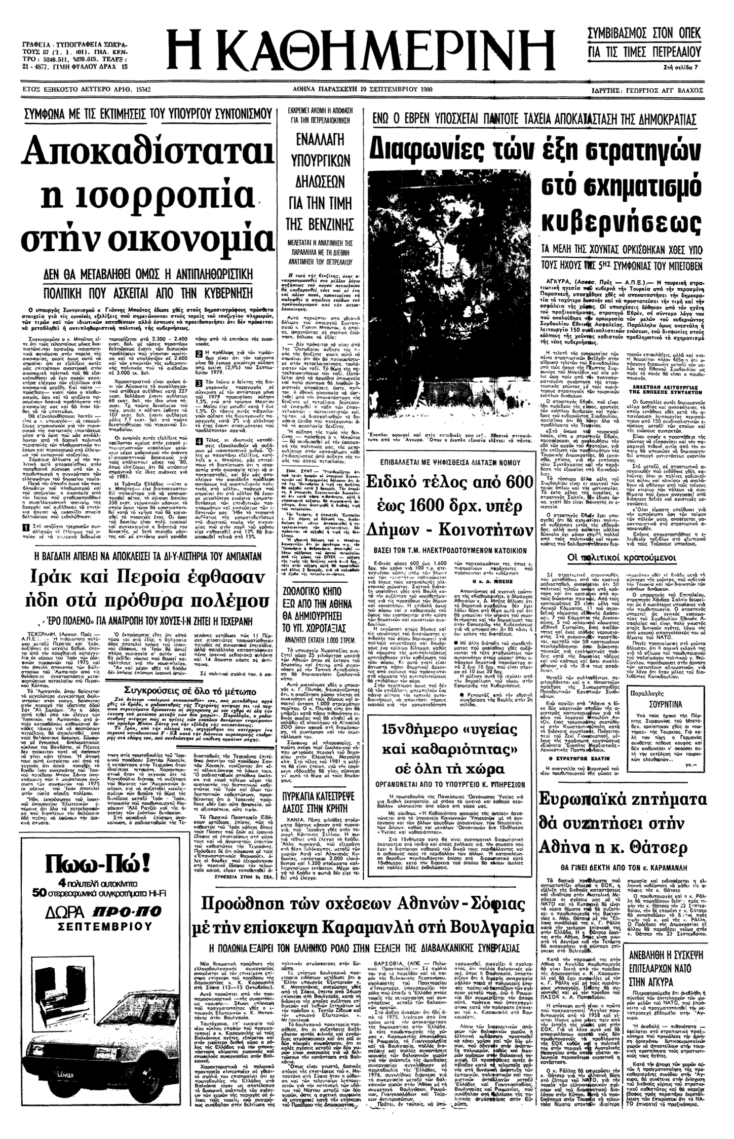 «Η τελετή της ορκωμοσίας των πέντε στρατιωτικών διεξήχθη στην αίθουσα τελετών του Κοινοβουλίου, υπό τους ήχους της Πέμπτης Συμφωνίας του Μπετόβεν [...]. Ο στρατηγός Εβρέν, που είναι ήδη πρόεδρος της χούντας, αρχηγός των ενόπλων δυνάμεων και πρόεδρος του κυβερνώντος Συμβουλίου, ορκίσθηκε ότι θα λύσει όλα τα προβλήματα της Τουρκίας. “Στο όνομα του τουρκικού λαού”, είπε ο στρατηγός Εβρέν, “προσφέρομαι να ακολουθήσω την οδό των αρχών Ατατούρκ, για την επίλυση των προβλημάτων της Τουρκικής Δημοκρατίας, θα εργασθώ επίσης για την εκπόνηση νέου Συντάγματος και την παράδοση της εξουσίας στο Κοινοβούλιο”.»