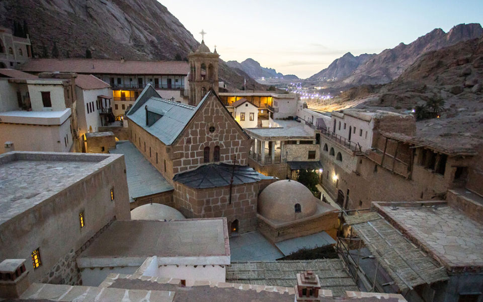 Στο βάθος της Σιναϊτικής ερήμου, μέσα στα τείχη της Μονής της Αγίας Αικατερίνης, επιζεί αιώνες τώρα ένα μικρό και συμπυκνωμένο Βυζάντιο. Από την ίδρυση της μονής από τον Ιουστινιανό (549-565 μ.Χ.) και μέχρι τις μέρες μας, με Ελληνορθόδοξους μοναχούς που φημίζονταν για την πνευματικότητα και την καλλιέργειά τους, μακριά από τα μεγάλα πολιτικά κέντρα και τα πεδία των μαχών, συγκεντρώθηκαν εδώ και διατηρήθηκαν πνευματικοί και πολιτιστικοί θησαυροί, που συνδέουν σε αδιάσπαστη συνέχεια τον κόσμο της Ύστερης Αρχαιότητας με τον 21ο αιώνα.