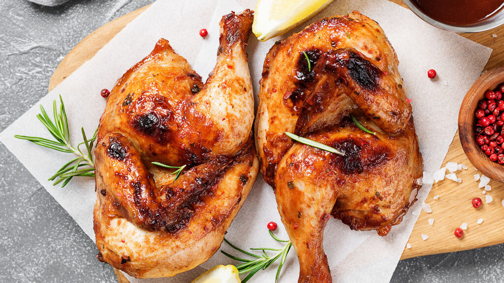 - Aλείφοντας το κοτόπουλο με λάδι ή βούτυρο και ψήνοντάς το στην κοτοπουλιέρα ή στη σχάρα του φούρνου στη λειτουργία του αέρα, εξασφαλίζουμε ομοιόμορφα ροδισμένη και τραγανή πέτσα.
