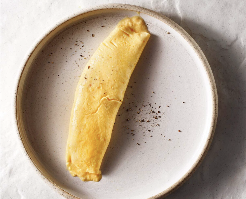 Η απλότητα στο μεγαλείο της. Μόνο αυγό και βούτυρο έχει η γαλλική ομελέτα. Βγαίνει από το τηγάνι χωρίς να πάρει χρώμα, ζουμερή, τρυφερή -όσο ροδίζει το αυγό, τόσο σφίγγει.