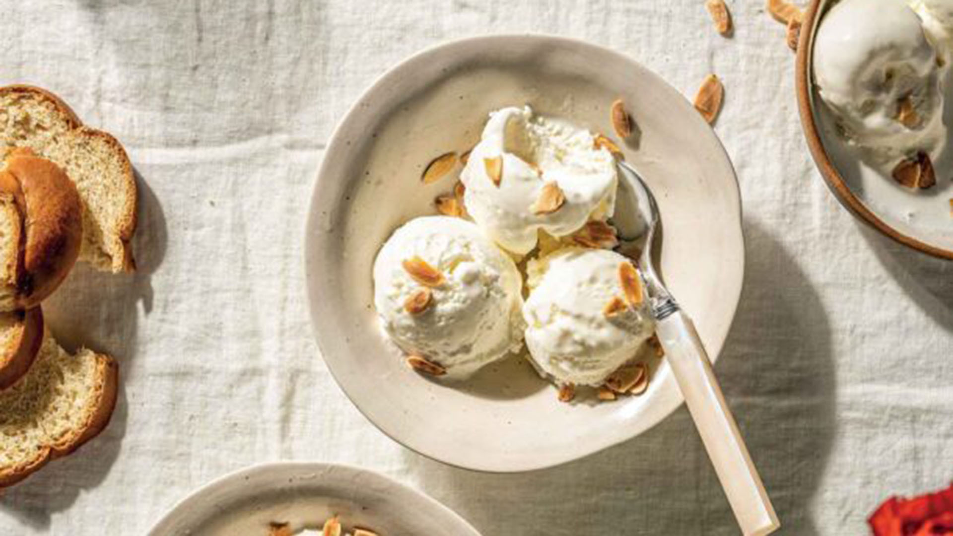 Για να φτιάξουμε το παγωτό με ανθότυρο και αριάνι, ξεκινάμε χτυπόντας στον κάδο του μίξερ το ανθότυρο με τη ζάχαρη μέχρι να γίνει ένα κρεμώδες μείγμα.