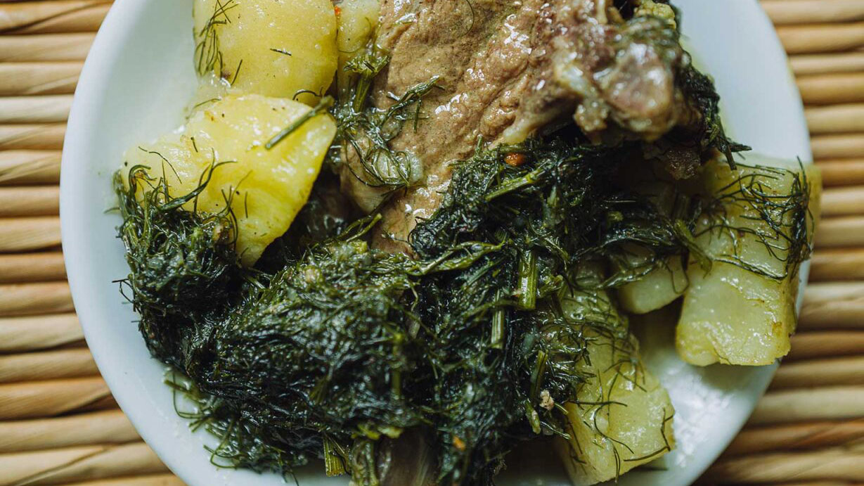 Το φαγητό αυτό σηκώνει μεγάλη ποσότητα αμάραθου, όπως λένε τον μάραθο στην Κρήτη. Ο Γιάννης μαζεύει άγριο μάραθο που φυτρώνει στο βουνό και προσθέτει γενναίες ποσότητες σχεδόν σε όλα τα φαγητά που μαγειρεύει. Στο κατσικάκι μπορεί να πρόσθεσε πολύ παραπάνω από ένα μάτσο, και ο ίδιος προτείνει, αν μας αρέσει, να μην τον λυπηθούμε, και να βάλουμε και δύο ή ακόμη και τρία ματσάκια. Οι μεγάλες ποσότητες μάραθου κάνουν το φαγητό να θυμίζει πιο πολύ το φρικασέ.