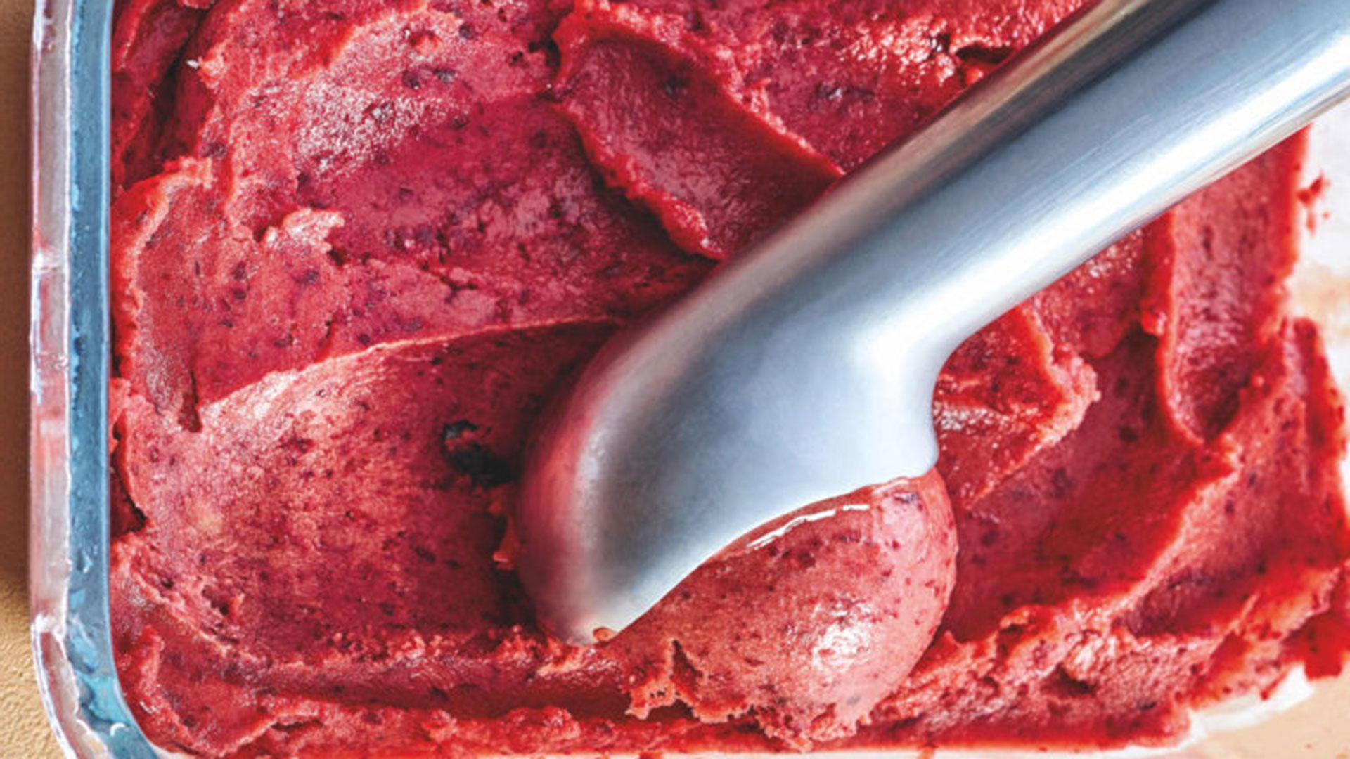 Eνα υπέροχο σορμπέ με φρέσκα κεράσια και νότες από πικραμύγδαλο. Υπάρχει κάτι πιο καλοκαιρινό από αυτό;