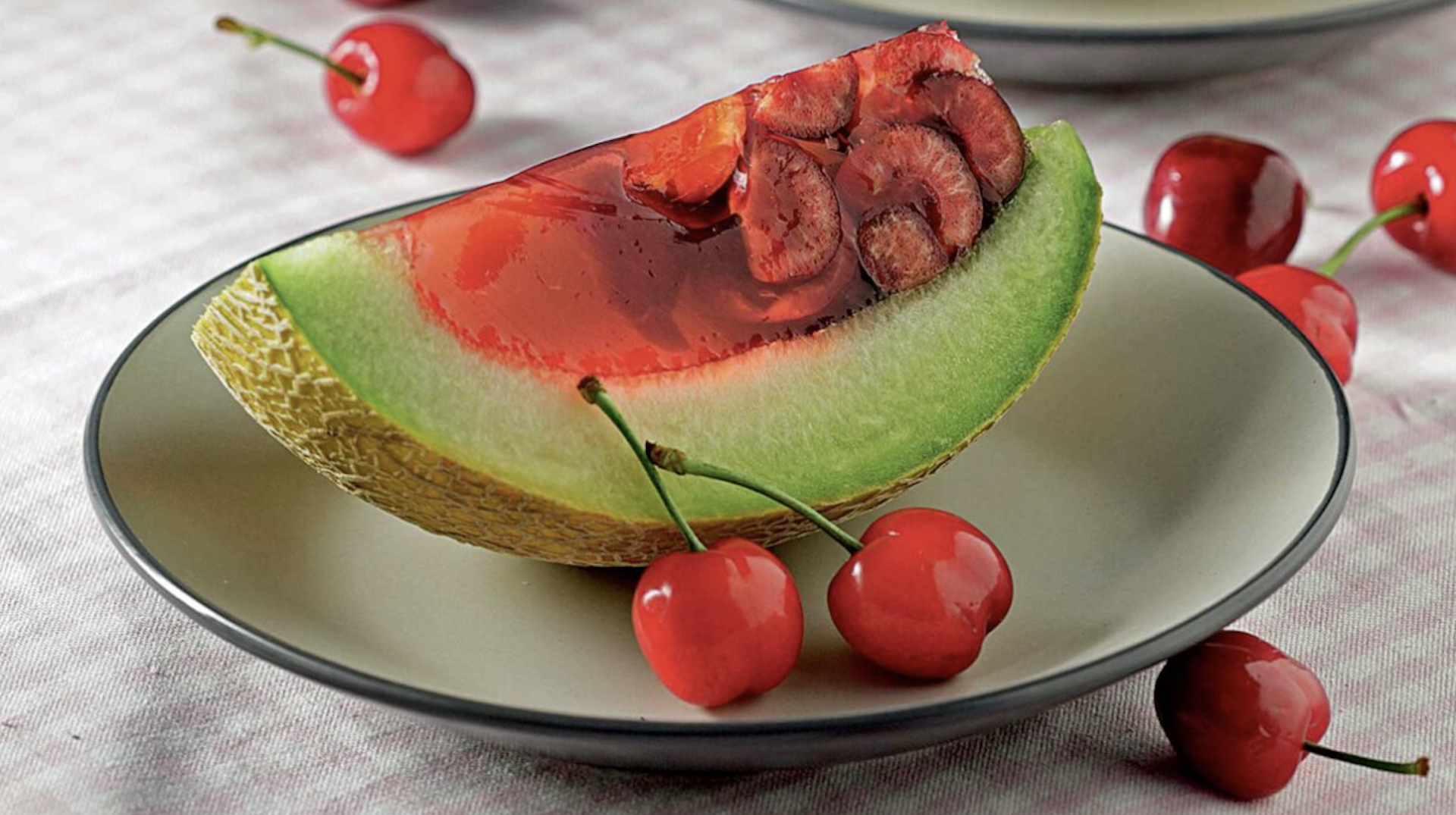 Μάθετε πώς θα φτιάξετε αυτό το εντυπωσιακό, καλοκαιρινό γλυκό: πεπόνι γεμιστό με ζελέ κεράσι.