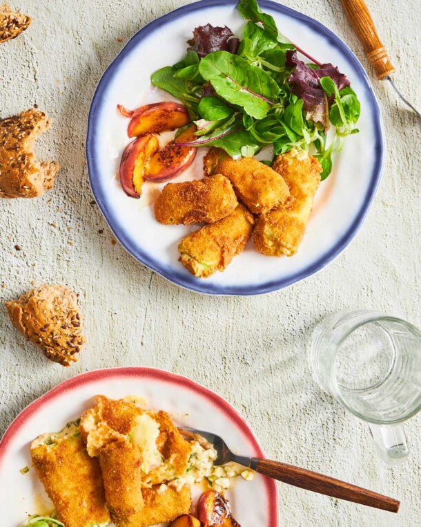 - 4 κολοκυθάκια μακρόστενα, κομμένα κατά μήκος σε μακριές, λεπτές φέτες, πάχους 2 χλστ.