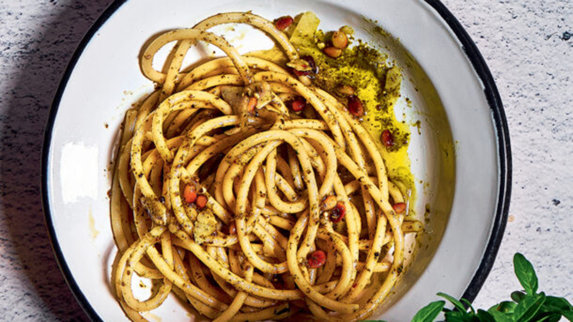Μεταφέρουμε το πέστο σε βαζάκι, το «σφραγίζουμε» με περίπου 1 εκ. ελαιόλαδο και το διατηρούμε στο ψυγείο.