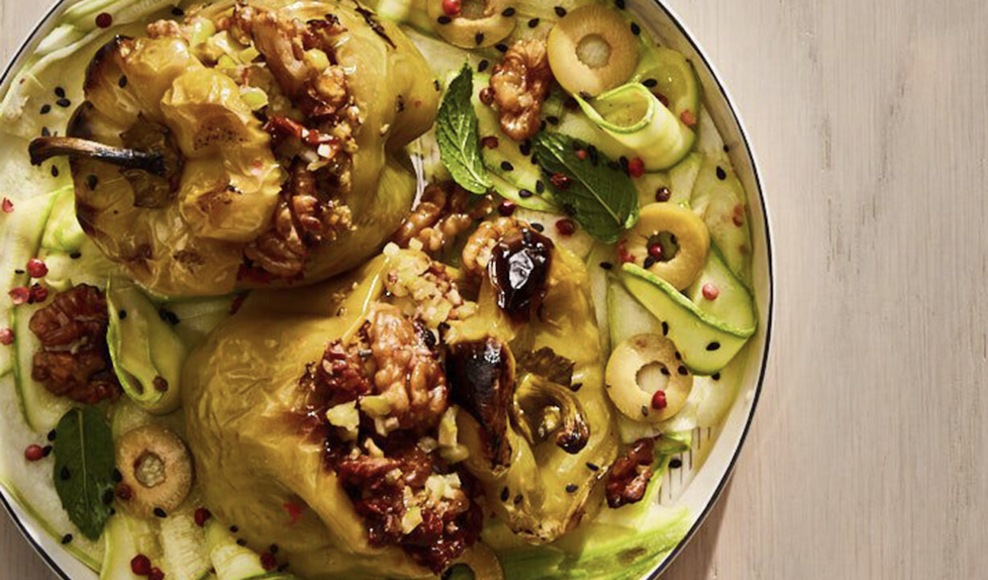 - 2 μικρά κολοκύθια, σε πολύ λεπτές φέτες, κομμένες με το πίλερ (το εργαλείο που ξεφλουδίζουμε τα λαχανικά)