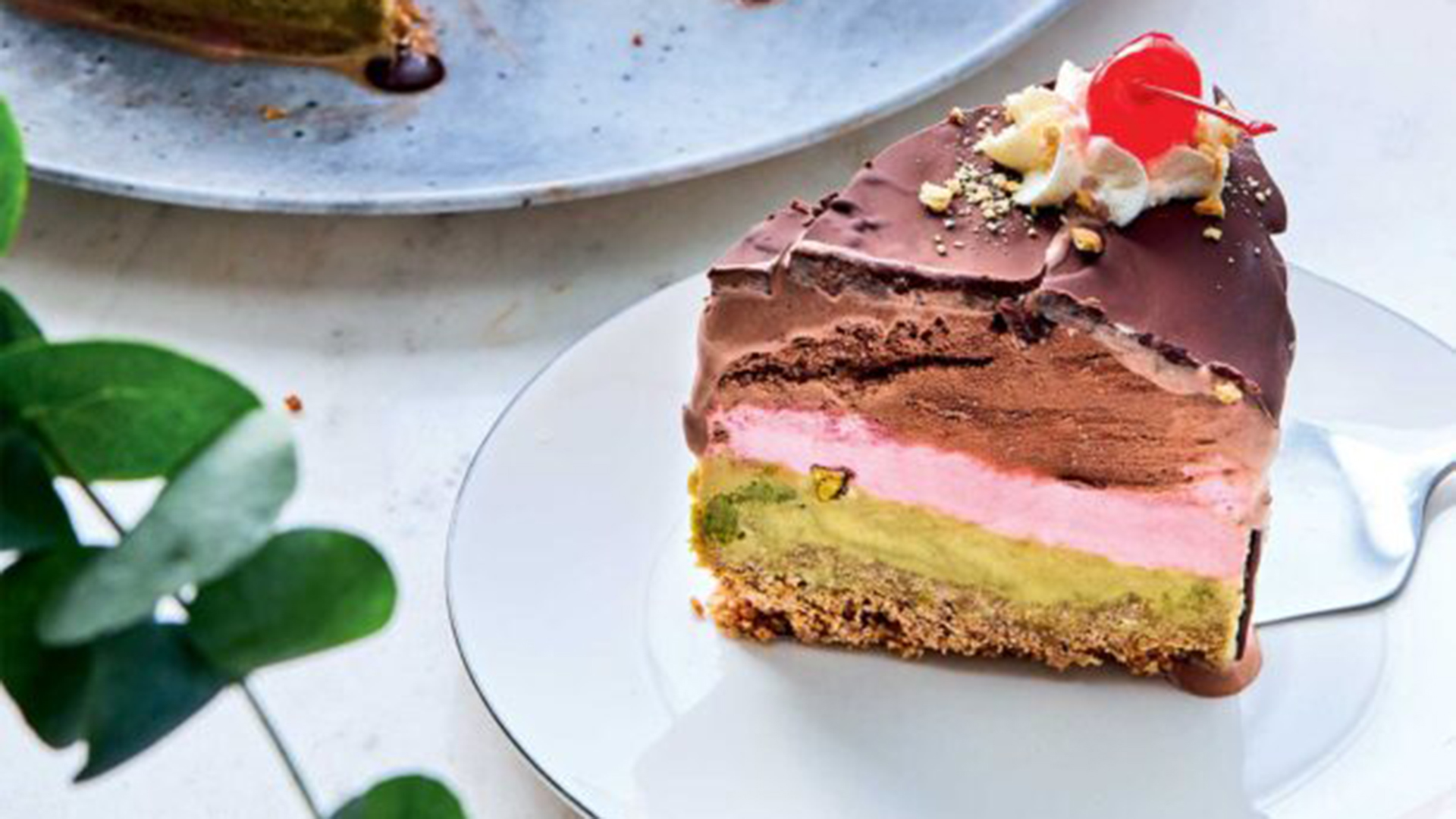 Ξεκινάμε βγάζοντας τα παγωτά από την κατάψυξη και τα αφήνουμε να ξεπαγώσουν για 20 λεπτά. Θέλουμε να μαλακώσουν τόσο που να απλώνονται εύκολα. Σπάμε τα μισά φιστίκια στο γουδί σε ακανόνιστα, χοντρά κομμάτια. Σε ένα μπολ ανακατεύουμε τη σκόνη από τα χωνάκια με το λιωμένο βούτυρο, 1 τσιμπιά αλάτι και τη ζάχαρη, μέχρι να γίνει ένα μείγμα σαν βρεγμένη άμμος.