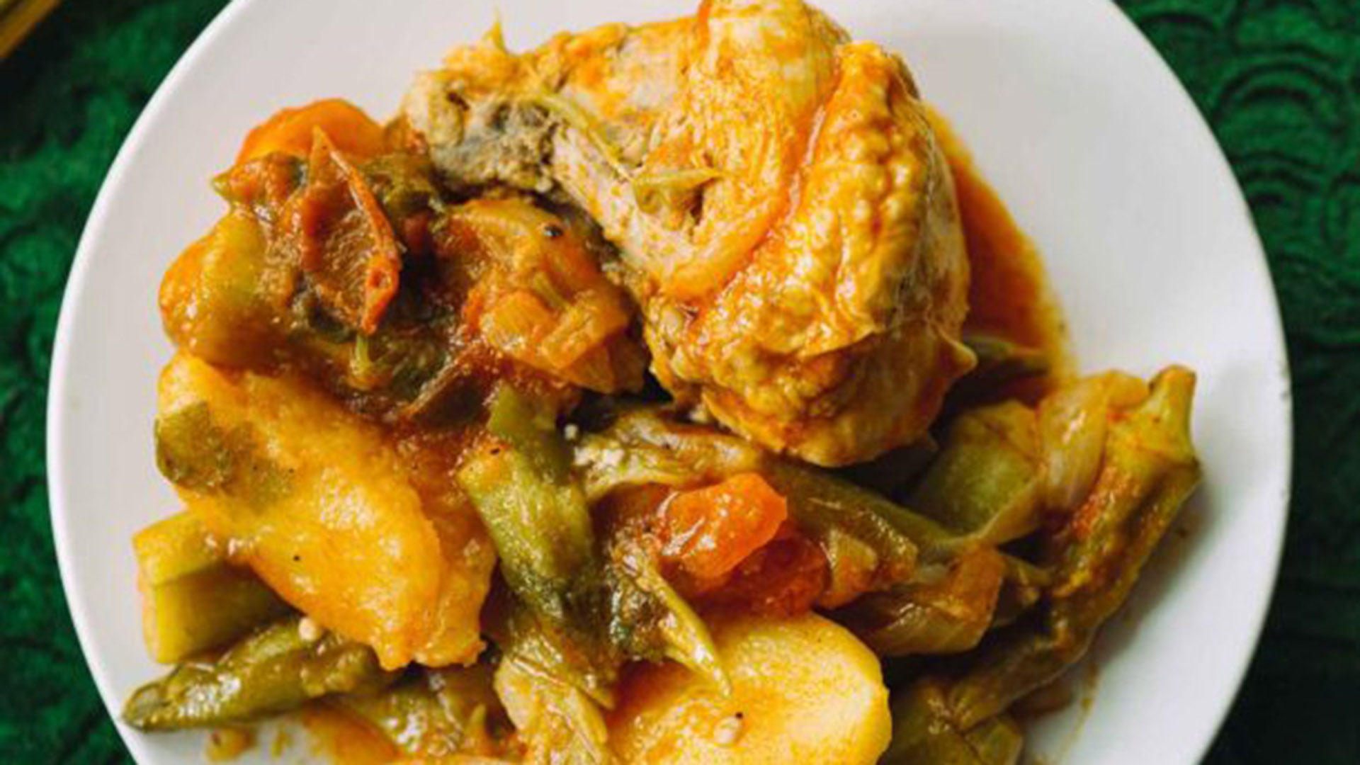 Προσθέτουμε τις μπάμιες, τις πατάτες, τον μαϊντανό, τις ντομάτες, τον πελτέ και αλάτι. Μαγειρεύουμε σε χαμηλή φωτιά μέχρι να μαλακώσει το κοτόπουλο και τα λαχανικά και να μείνουν με μια πηχτή σαλτσούλα, για περίπου 40-45 λεπτά.