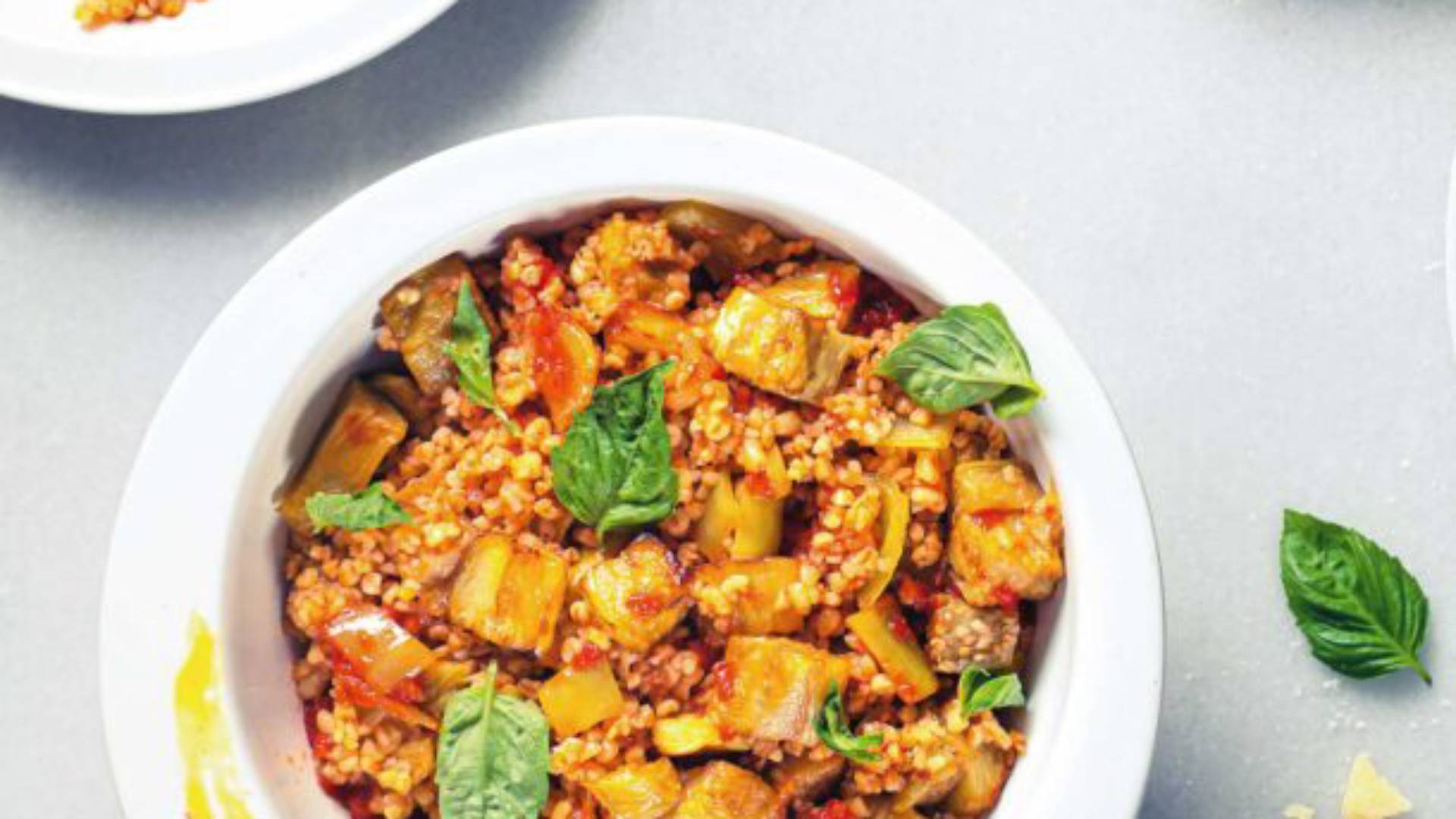 Νόστιμο, χορταστικό και υγιεινό, το πλιγούρι δένει θαυμάσια με τη γλύκα της μελιτζάνας και το μεθυστικό άρωμα του βασιλικού.