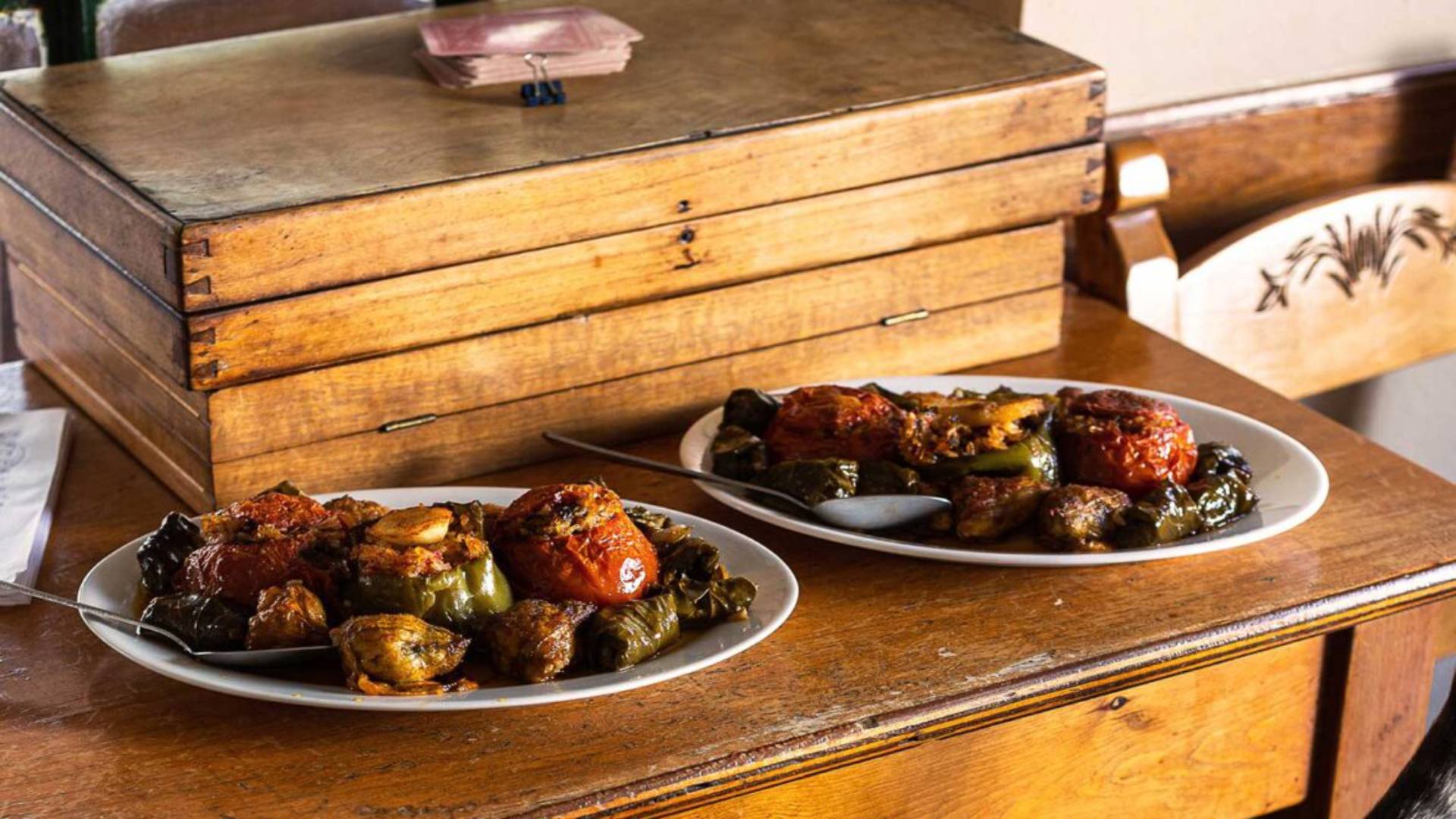 «Κορίτσια, ελάτε να καθίσετε στο τραπέζι μας να πιείτε μια τσικουδιά!» Η παρέα που μας προσκάλεσε ήταν μεγάλη, καθόταν στο μακρύ τραπέζι της αυλής του καφενείου, απέναντι από το γωνιακό δικό μας τραπεζάκι, και είχε ήδη ξεκινήσει να παραγγέλνει τους μεζέδες της: γεμιστά με ανθούς και ντολμαδάκια, χοιρινό της κατσαρόλας, παϊδάκια στο τηγάνι, τηγανητές πατάτες.