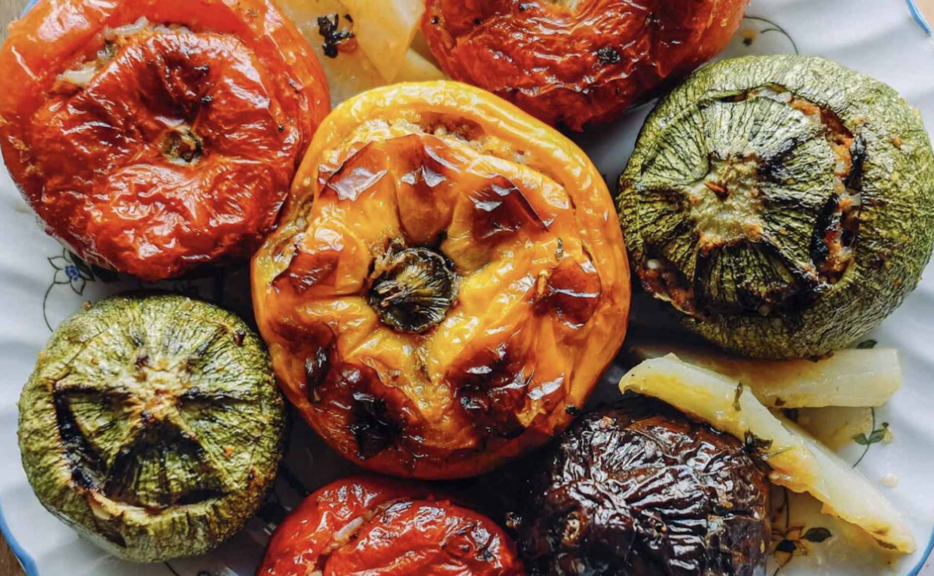 Στο ίδιο ταψί θα ψήσουμε γεμιστά και με κιμά και «ορφανά» για να μην μείνει κανείς παραπονεμένος. Γεμίστε πιπεριές, ντομάτες και κολοκύθια κατά το γούστο σας.