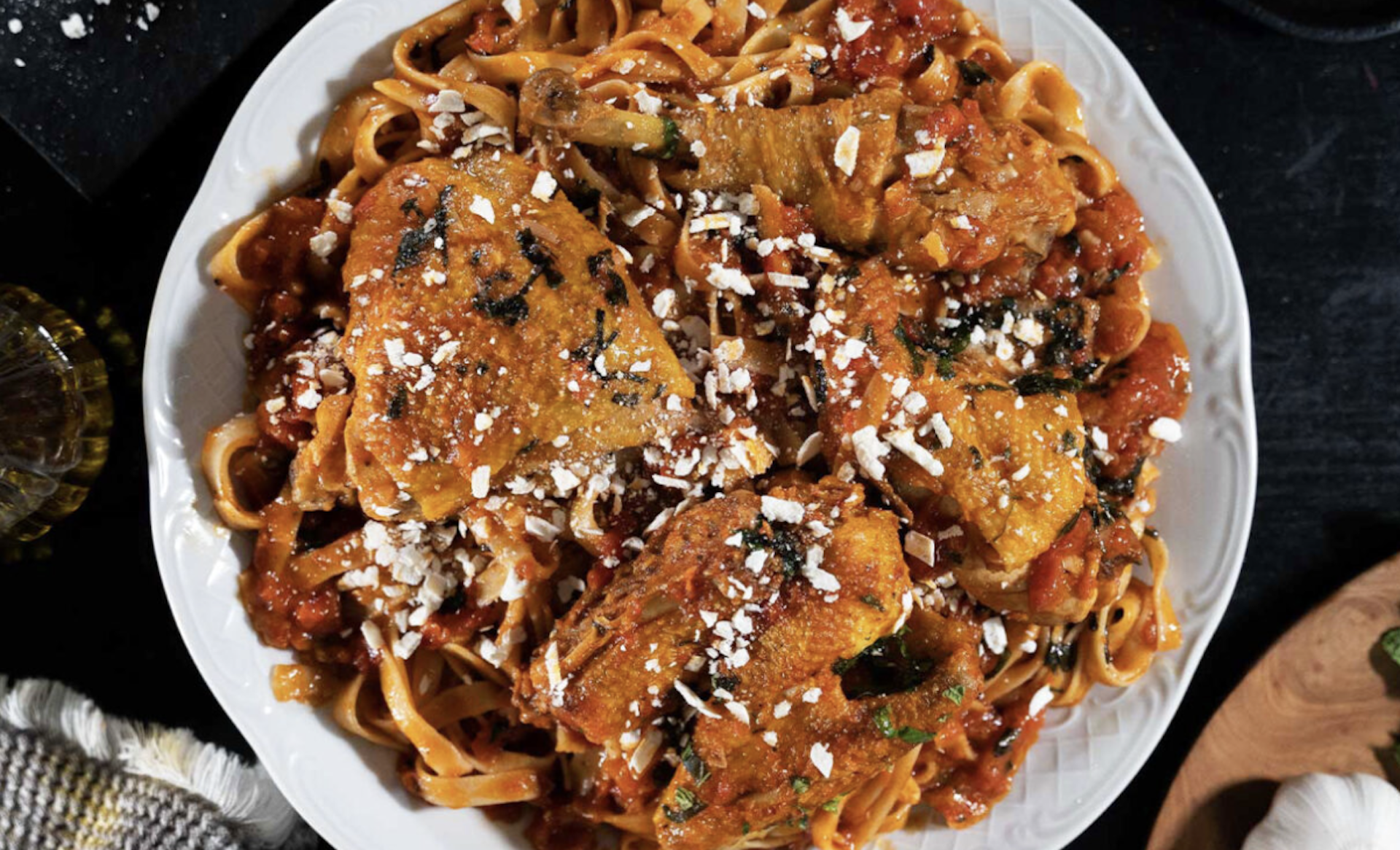 Ο πιο κλασικός, παραδοσιακός, νόστιμος και ζουμερός κόκορας με μακριές χυλοπίτες και πλούσια, ζουμερή σάλτσα ντομάτας. Όλα τα μυστικά για ένα αλησμόνητο κοκκινιστό.
