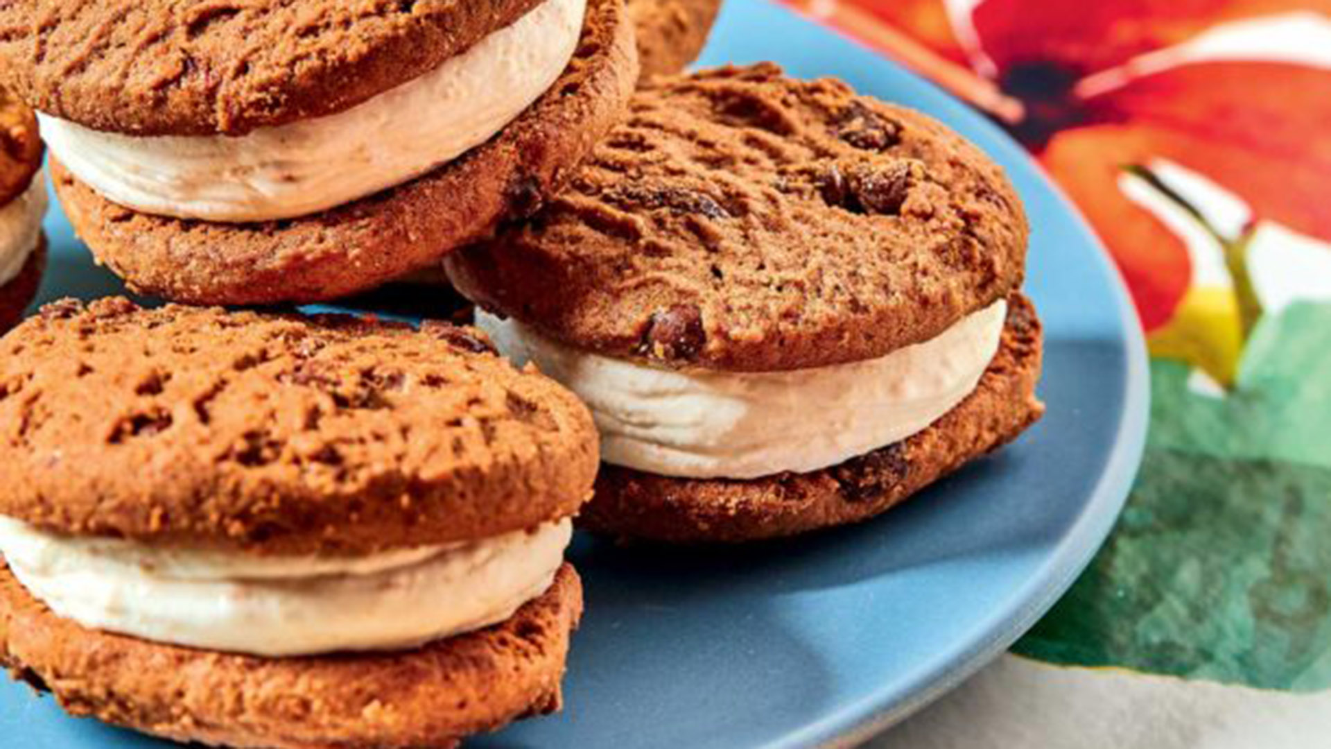 Για να φτιάξουμε τα παγωτό-σάντουιτς, ξεκινάμε την κρέμα γάλακτος με το μίξερ μέχρι να γίνει παχύρρευστη σαν γιαούρτι, αλλά όχι τόσο που να γίνει σαντιγί.