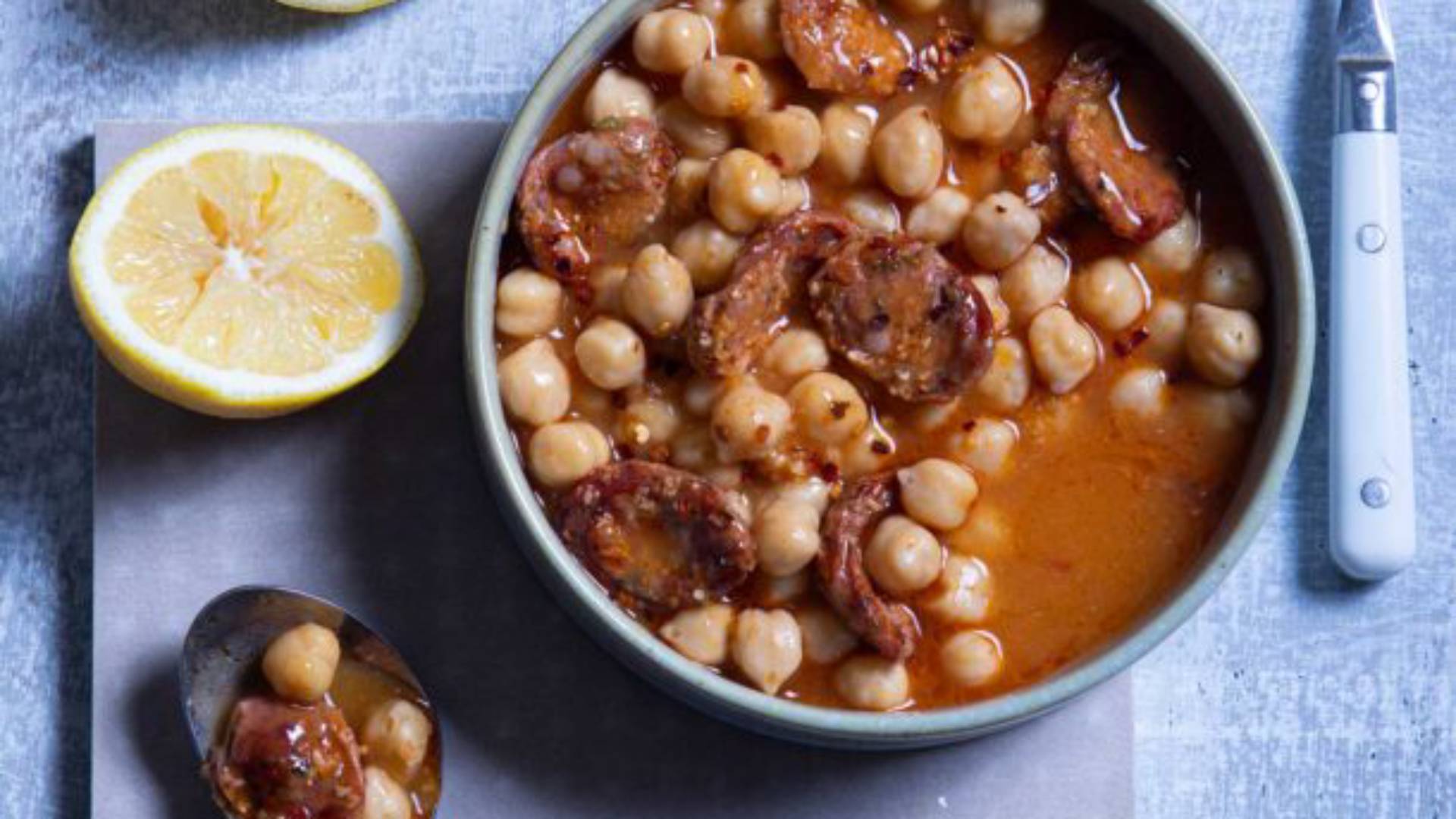 - Για να ετοιμάσουμε τα ρεβύθια στην κατσαρόλα με λουκάνικο σε φαρδιά κατσαρόλα ζεσταίνουμε το λάδι σε μέτρια φωτιά και σοτάρουμε τα κρεμμύδια με το μπαχάρι και αλατοπίπερο για 4-5 λεπτά ή μέχρι να μαλακώσουν.