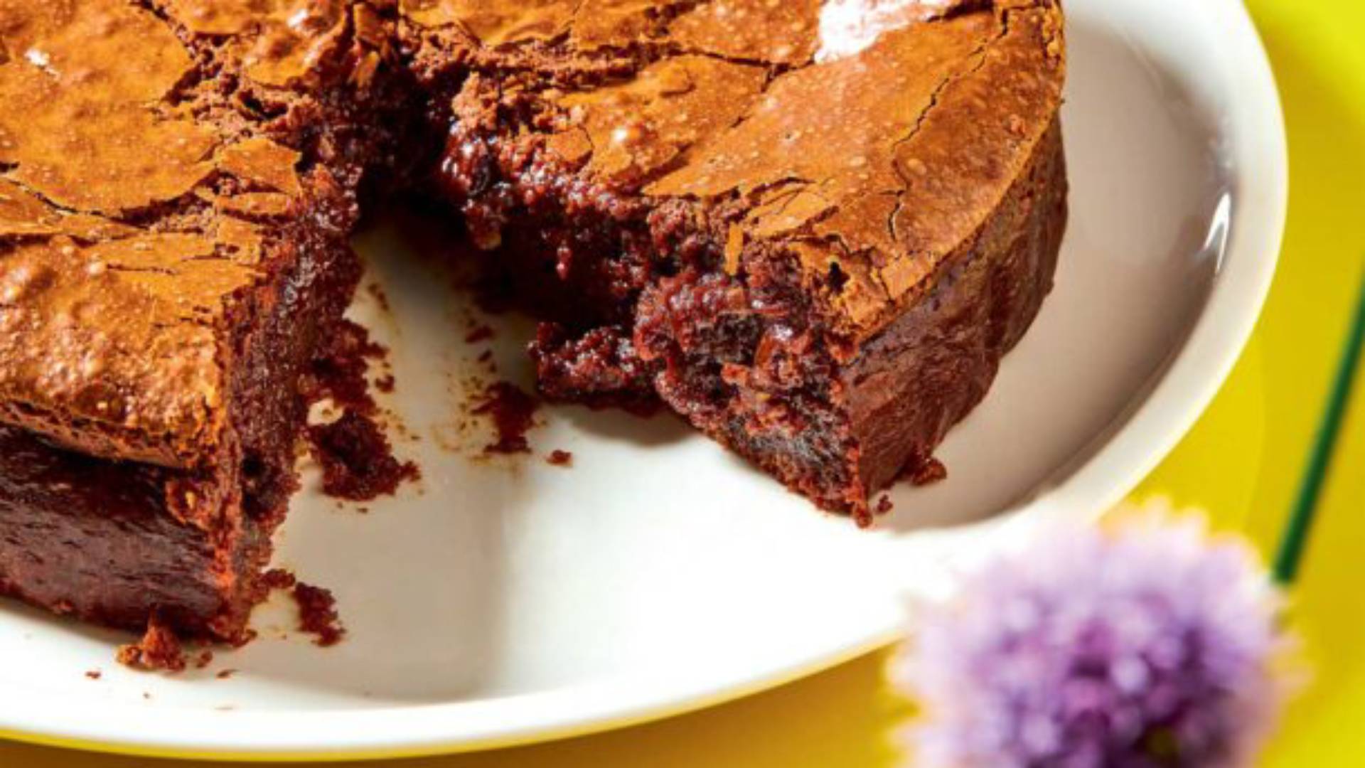 Καλύπτουμε με αντικολλητικό χαρτί τον πάτο και τα τοιχώματα μιας στρογγυλής φόρμας διαμέτρου 20 εκ. ή μιας μακρόστενης φόρμας του κέικ, όχι πολύ μεγάλης.