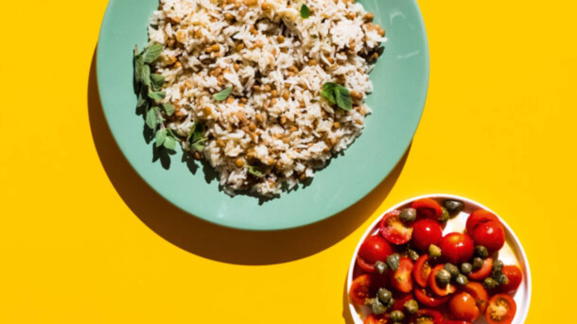 Εύκολο και χορταστικό φακόρυζο με μαντζουράνα. Ιδανικό συνοδευτικό, μια σαλάτα με ψωμωμένες ντομάτες, κάππαρη, ελιές, καυτερές πιπεριές, ρίγανη.