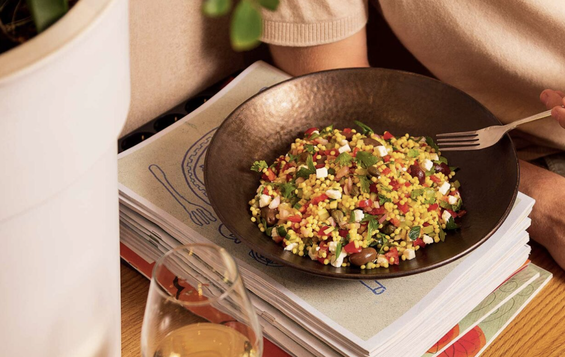 Στο πι και φι είναι έτοιμο το κουσκούς με λαχανικά και φέτα. Αν θέλουμε, διατηρούμε στο ψυγείο, σε βαζάκια, για να έχουμε γεύμα ανά πάσα στιγμή.