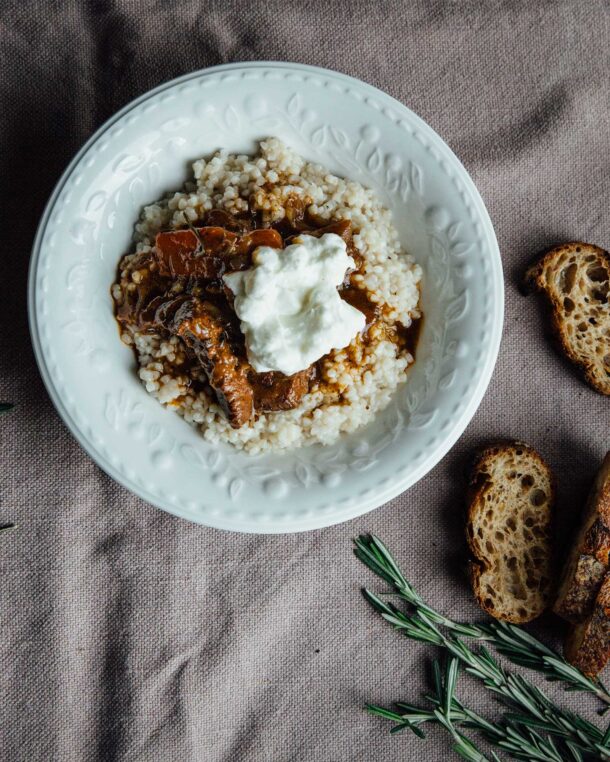- 800 γρ. μοσχάρι, κατά προτίμηση ελιά, σε κύβους των 3 εκ.
