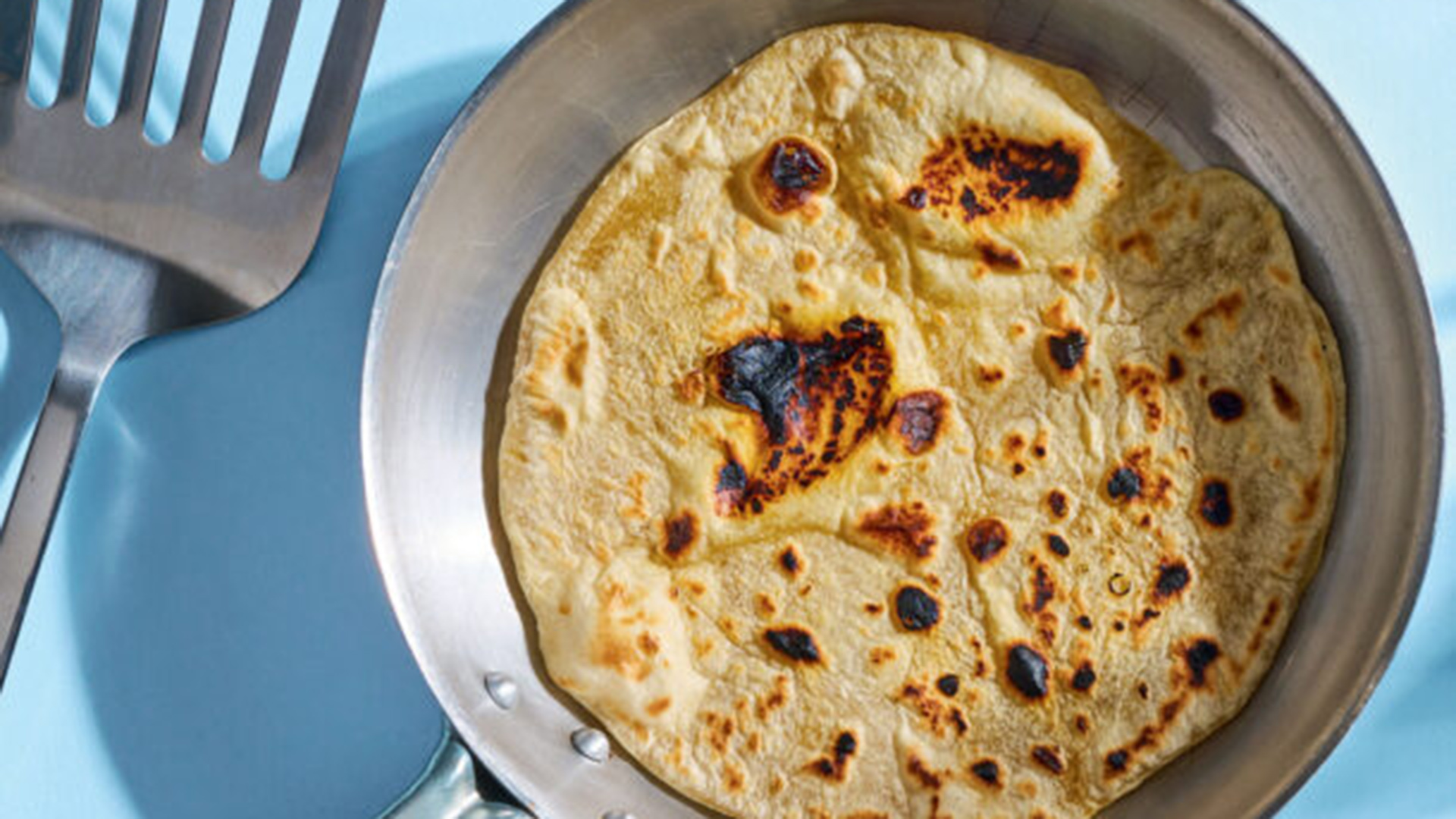 Για να φτιάξουμε τις άζυμες πίτες στο τηγάνι ξεκινάμε κοσκινίζοντας το αλεύρι στον κάδο του μίξερ και έπειτα προσθέτουμε όλα τα υπόλοιπα υλικά.