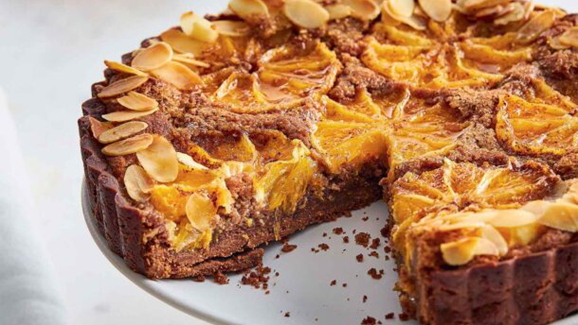 Για να φτιάξουμε την πορτοκαλόπιτα με σοκολάτα και αμύγδαλο, ξεκινάμε με τη βάση του γλυκού.