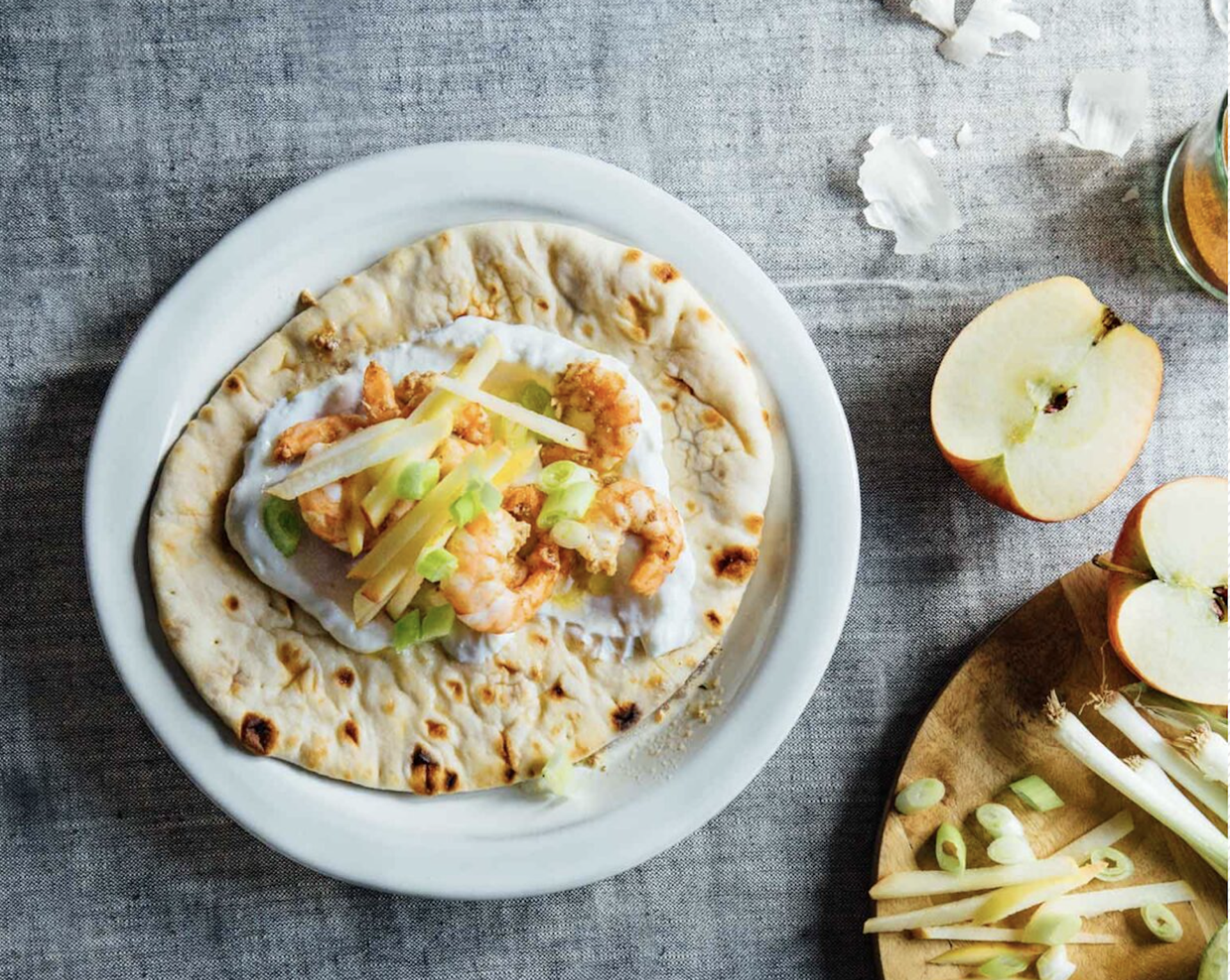 Πρωτότυπα τυλιχτά με γαρίδες, που γίνονται στο λεπτό, μήλο και δροσερή σάλτσα. Για όλες τις ώρες, αλλά και ως μεζές για την παρέα και τους ξαφνικούς επισκέπτες.