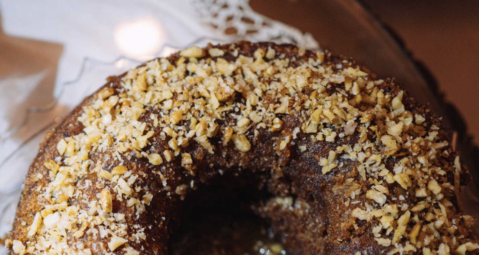 - Ξεφορμάρουμε σε πιατέλα και πασπαλίζουμε με την τριμμένη καρυδόψιχα.