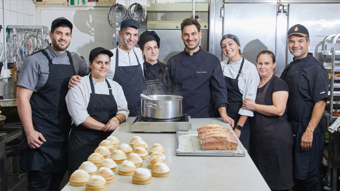 Ο Θανάσης Τσαγκλιώτης από μικρός ήθελε να κάνει ένα μαγαζί. Επιστρέφοντας από την Αγγλία αποφάσισε να το βάλει μπρος. Δεν ήταν εύκολο όμως. «Είχα μαζέψει κάποια λεφτά, αλλά ήμουν άσχετος με το επιχειρηματικό κομμάτι. Ξεκίνησα να ψάχνω στα βόρεια, τα ενοίκια όμως ήταν τρελά», λέει. Τότε έμαθε ότι το Maron, το ζαχαροπλαστείο στην Καλλιθέα όπου δούλευε η μητέρα του ως πωλήτρια όταν ήταν μικρός, έκλεισε. Το ενοίκιο ήταν ένα ποσό στο οποίο μπορούσε να ανταπεξέλθει, αλλά είχε τα μισά από όσα χρειαζόταν, ήθελε φτιάξιμο από την αρχή, μηχανήματα, με τα capital controls πίστωση για τις πρώτες ύλες δε γινόταν. Δανείστηκε από φίλους και γνωστούς, και το άνοιξε, το 2014. «Με τα λάθη μας σταθήκαμε στα πόδια μας και σιγά-σιγά το La Maison μαθεύτηκε από στόμα σε στόμα και απέκτησε μια σταθερή πελατεία. Ό,τι μας έμενε το επενδύαμε στο μαγαζί», λέει. Παράλληλα έκανε κι άλλες δουλειές, ανάμεσα στις οποίες και consulting – στο Mayan τότε πέτυχα ένα επιδόρπιό του, γαλλικο-εξωτικό, με σοκολάτα, yuzu και shiso, που πολύ το εκτίμησα. «Το δυνατό μου κομμάτι είναι τα à la carte γλυκά. Είναι δύσκολο από εκεί να περάσεις στο κομμάτι του ζαχαροπλαστείου, όπου ένα γλυκό πρέπει να μείνει στη βιτρίνα 4-5 ώρες. Μια opaline (ένα διάφανο tuille καραμέλας), ας πούμε, στη βιτρίνα δεν θα αντέξει. Για αυτό και είναι λάθος να συγκρίνεις τα γλυκά ενός ζαχαροπλαστείου με αυτά που θα φας σε ένα εστιατόριο. Το ίδιο και το να συγκρίνεις ένα boutique ζαχαροπλαστείο με 5-10 κωδικούς με ένα ζαχαροπλαστείο που έχει δεκάδες. Εμείς δεν είμαστε boutique», σημειώνει.