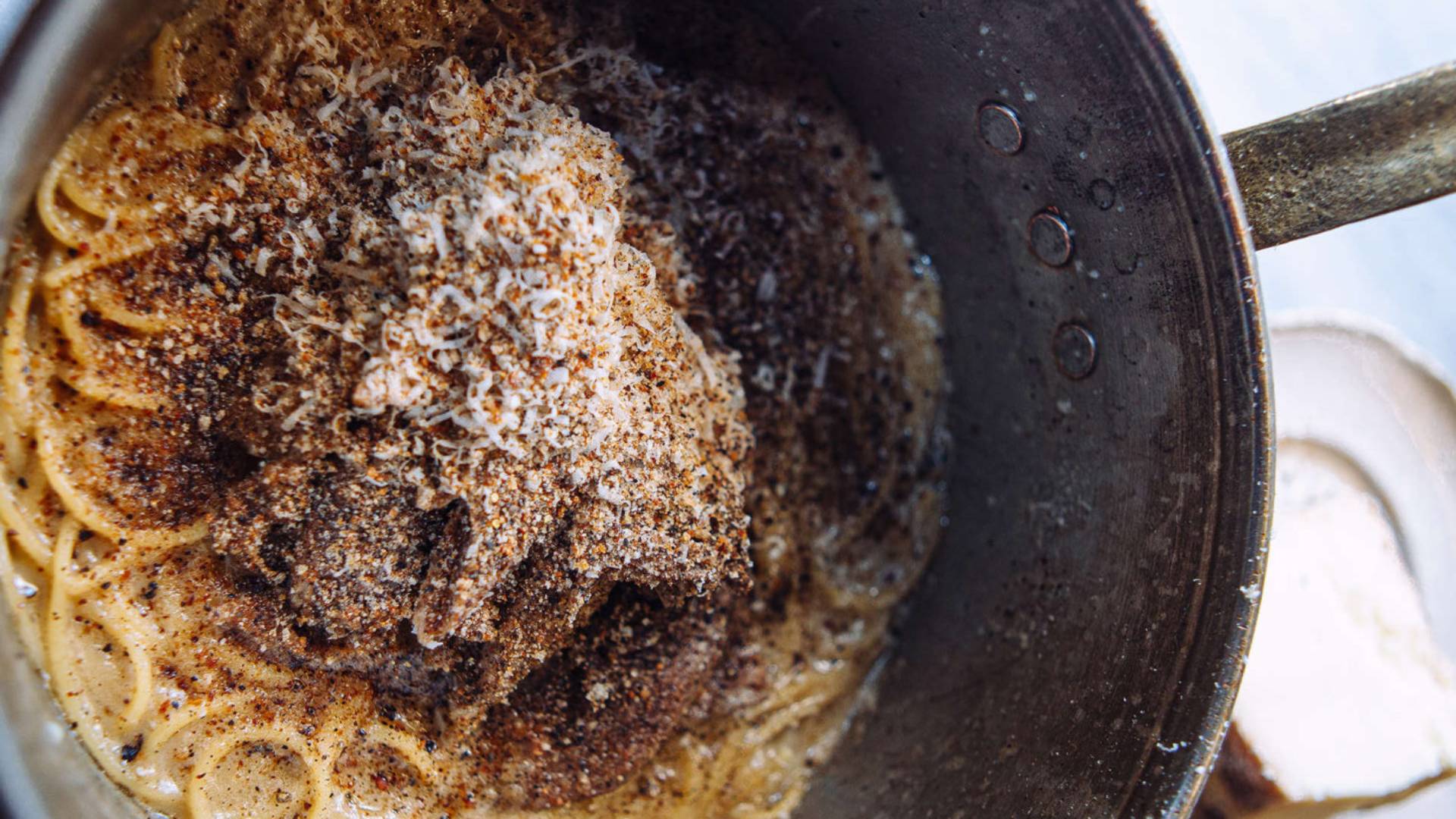 Δυο πιάτα που δοκίμασα στο νέο εστιατόριο του Άνταμ Κοντοβά θα ξεχωρίσω. Το ένα, ταμίες. Μακρόστενα αιγυπτιακά φαλάφελ από κουκιά, σαν δαχτυλάκια, με κρούστα μπαχαρικών, που ο σεφ συνοδεύει με μια vegan μαγιονέζα από γάλα σόγιας και –εδώ είναι το καλύτερο– μια ουμαμίσια σάλτσα-βόμβα γεύσης. Το άλλο, τα χοντρά σπαγγέτι που δείχνουν σκέτα αλλά δεν είναι: από κάτω είναι κρυμμένη μια πολύ νόστιμη σάλτσα κακαβιάς και XO sauce. Όταν τα ανακατέψεις είναι πολύ ωραίο πράγμα. Α.Σ.