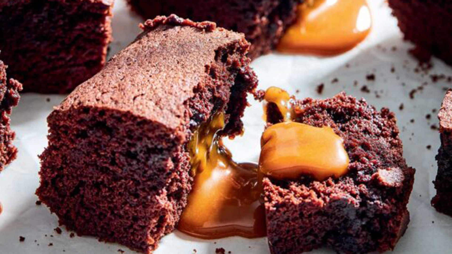 Τα συνηθισμένα μπράουνι ψήνονται για μόλις 18-22 λεπτά, με σκοπό το κέντρο τους να είναι σχετικά ημίρρευστο. Εδώ το ψήνουμε για σχεδόν 1 ώρα, γιατί το ημίρρευστο τμήμα κάθε κομματιού προέρχεται από τις καραμελίτσες βουτύρου που λιώνουν.