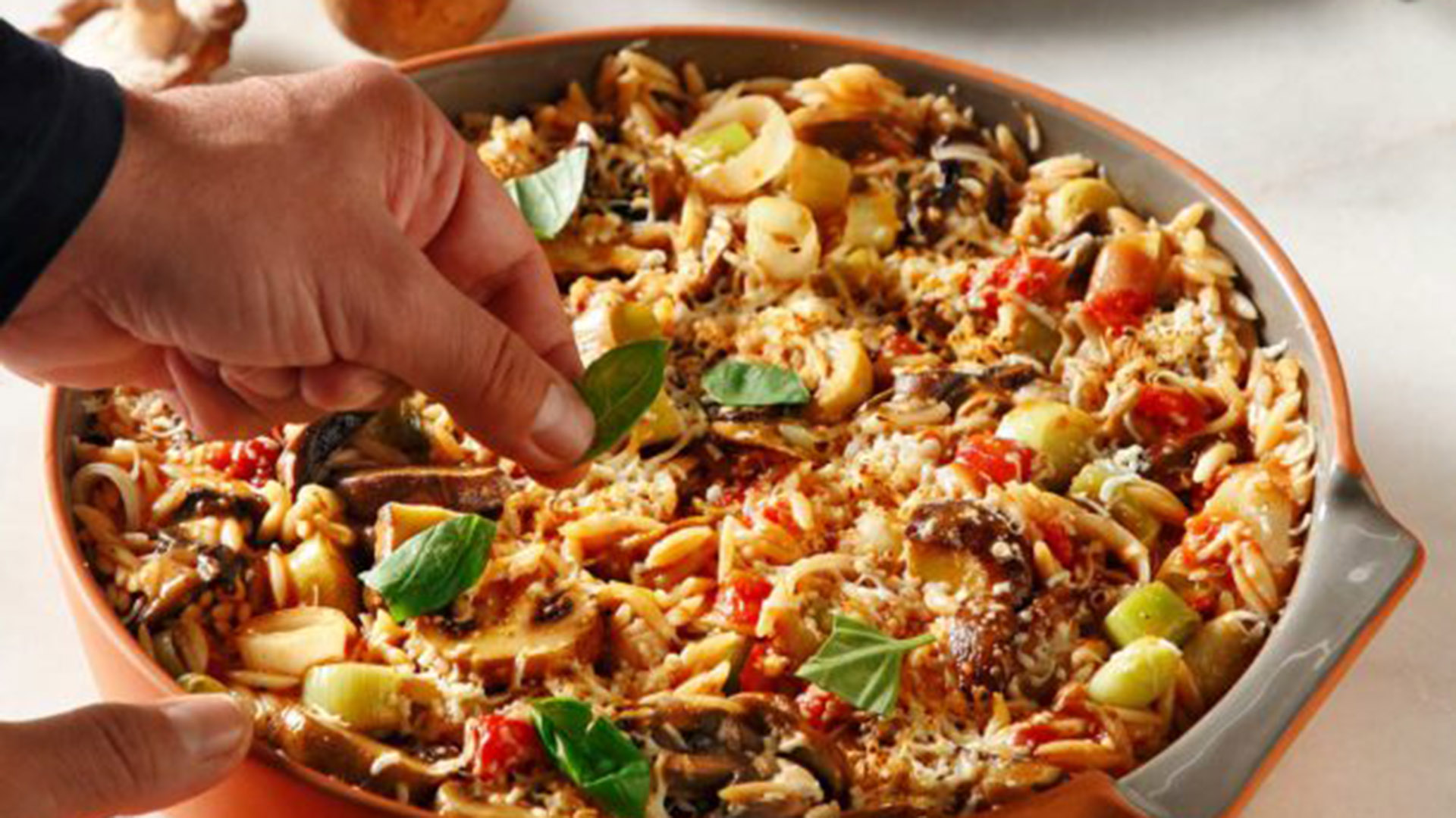 - Ψήνουμε για περίπου 20 λεπτά, μέχρι να μαλακώσει το κριθαράκι και να απορροφήσει τα υγρά.