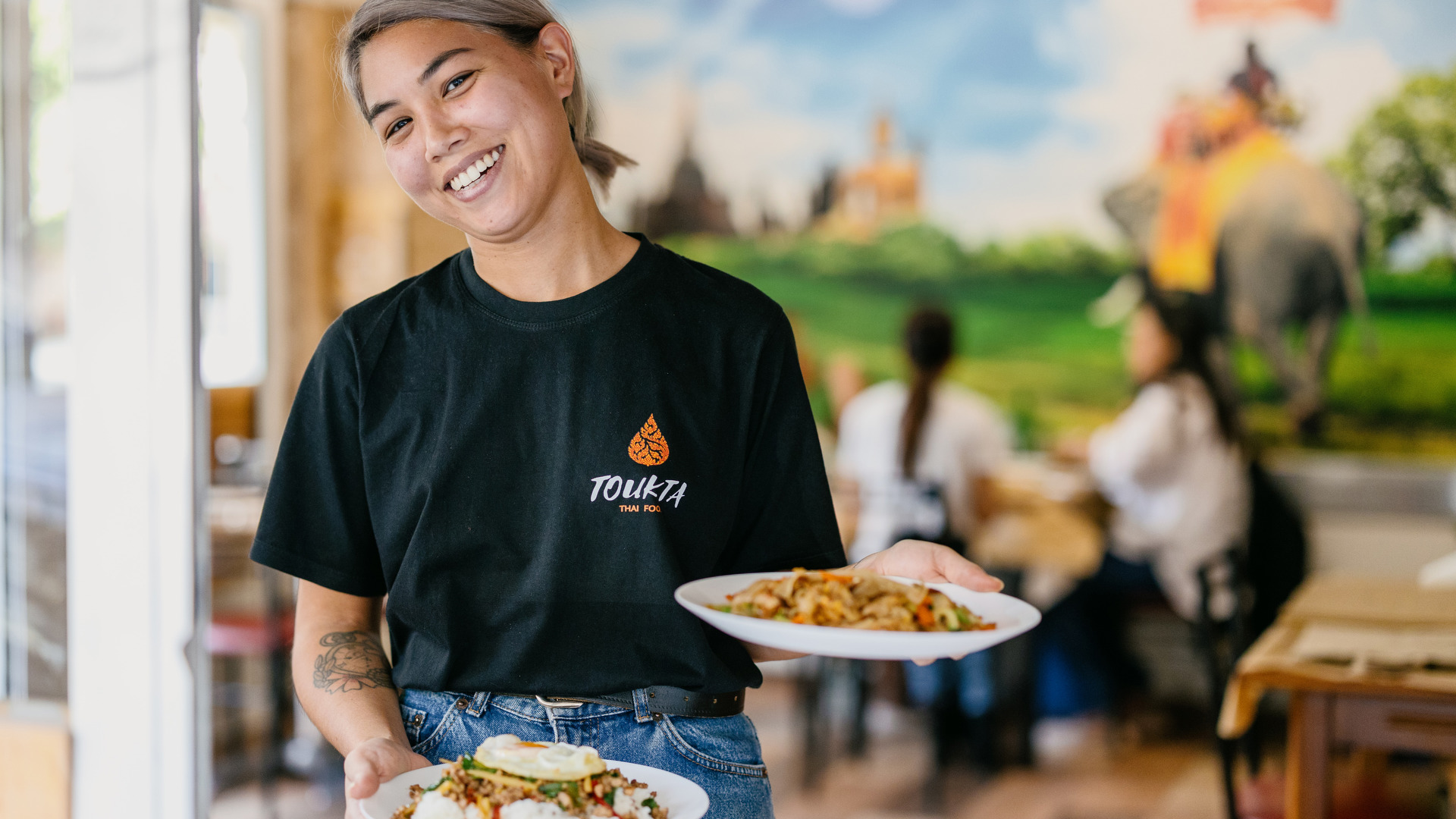 Η γειτονιά και οι γύρω περιοχές αγάπησαν σιγά σιγά την «μαμαδίστικη» κουζίνα της Toukta. Αν και μέχρι σήμερα το μαγαζί λειτουργεί κυρίως μέσω διανομών, ο μικρός, απλός και περιποιημένος χώρος γεμίζει γρήγορα κάθε μέρα (γι’ αυτό και συστήνουμε κράτηση). «Ο τρόπος που μαγειρεύει η μητέρα μου είναι ακριβώς όπως τα κάνει και στη κουζίνα του σπιτιού μας: με τα σκόρδα, τα αρωματικά, τις εντάσεις που έχει το ταϊλανδέζικο φαγητό. Δεν κάνει ιδιαίτερες προσαρμογές για να “ταιριάξει” στα ελληνικά γούστα και αυτός είναι και ο λόγος που τελικά αρέσει τόσο πολύ. Μόνο το καυτερό στοιχείο μετριάζουμε για όποιον δεν πολυαντέχει αλλά και πάλι θα προσπαθήσουμε να πείσουμε αυτόν που θα έρθει στο μαγαζί να δοκιμάσει και κάτι καυτερό, γιατί είναι μέρος της εμπειρίας» λέει η Μαριάννα.